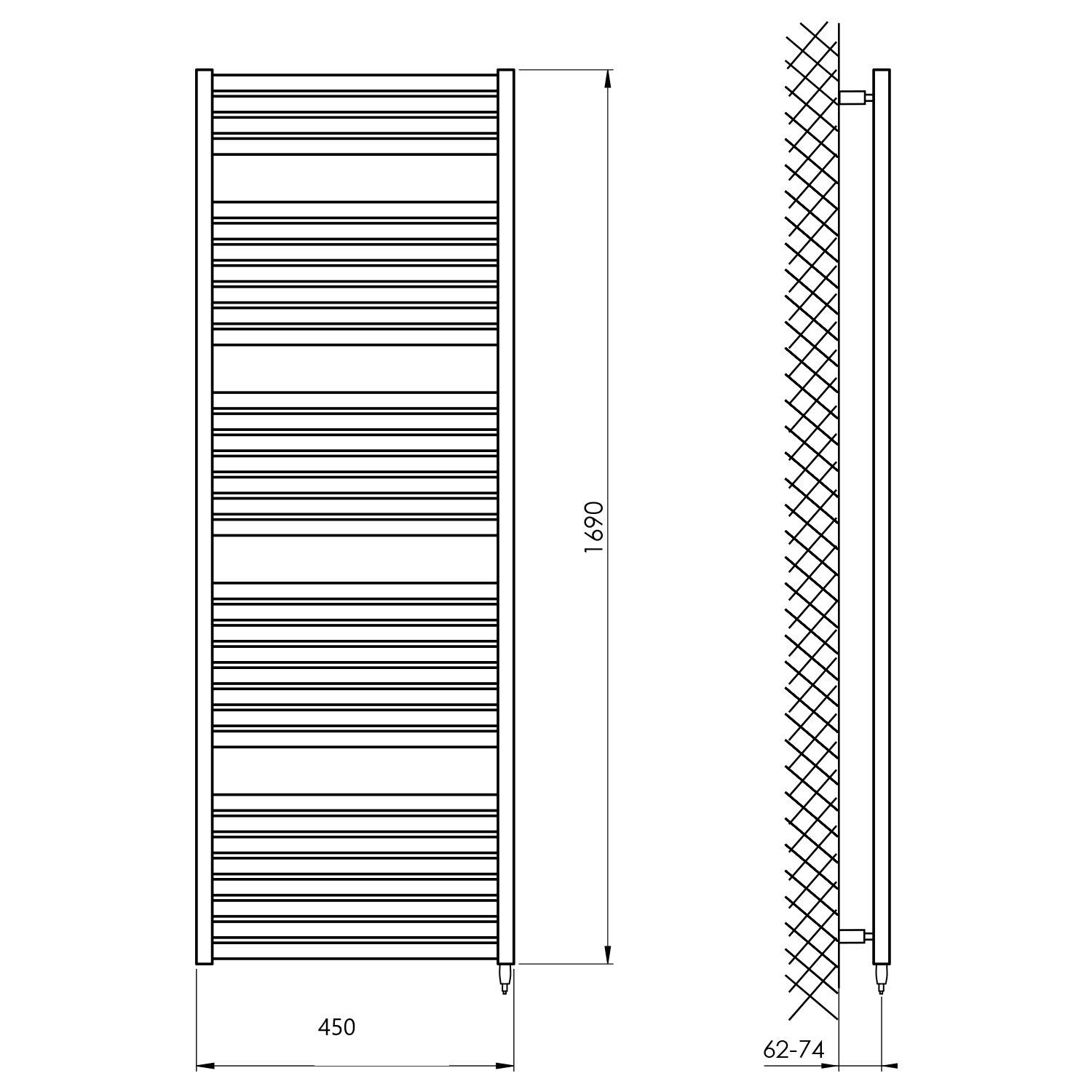 DE446T AQUALINE TONDI-E elektromos fürdőszobai radiátor, 450x1690mm, 600W, matt fekete
