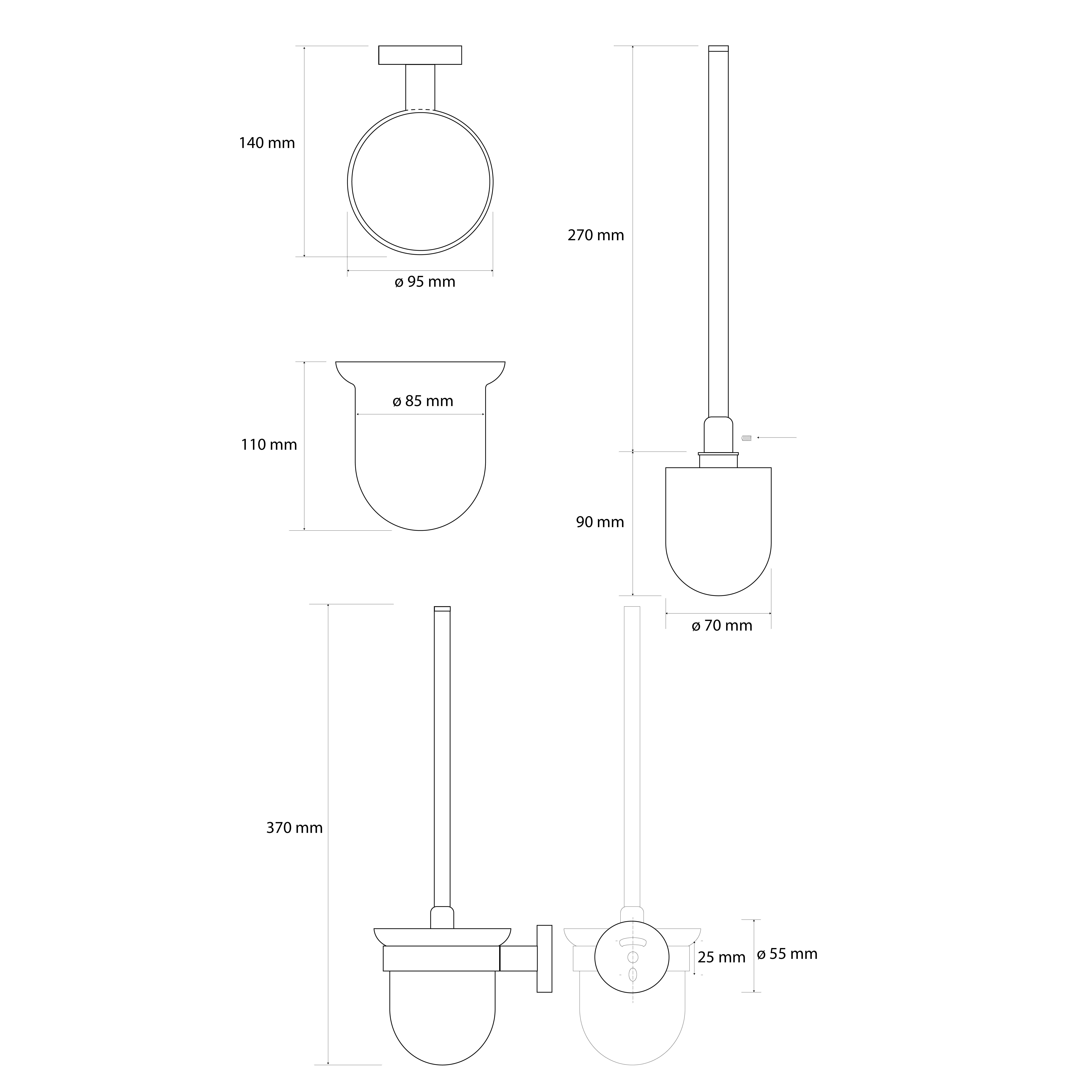 XB320 WC-kefetartó, matt üveg/fekete