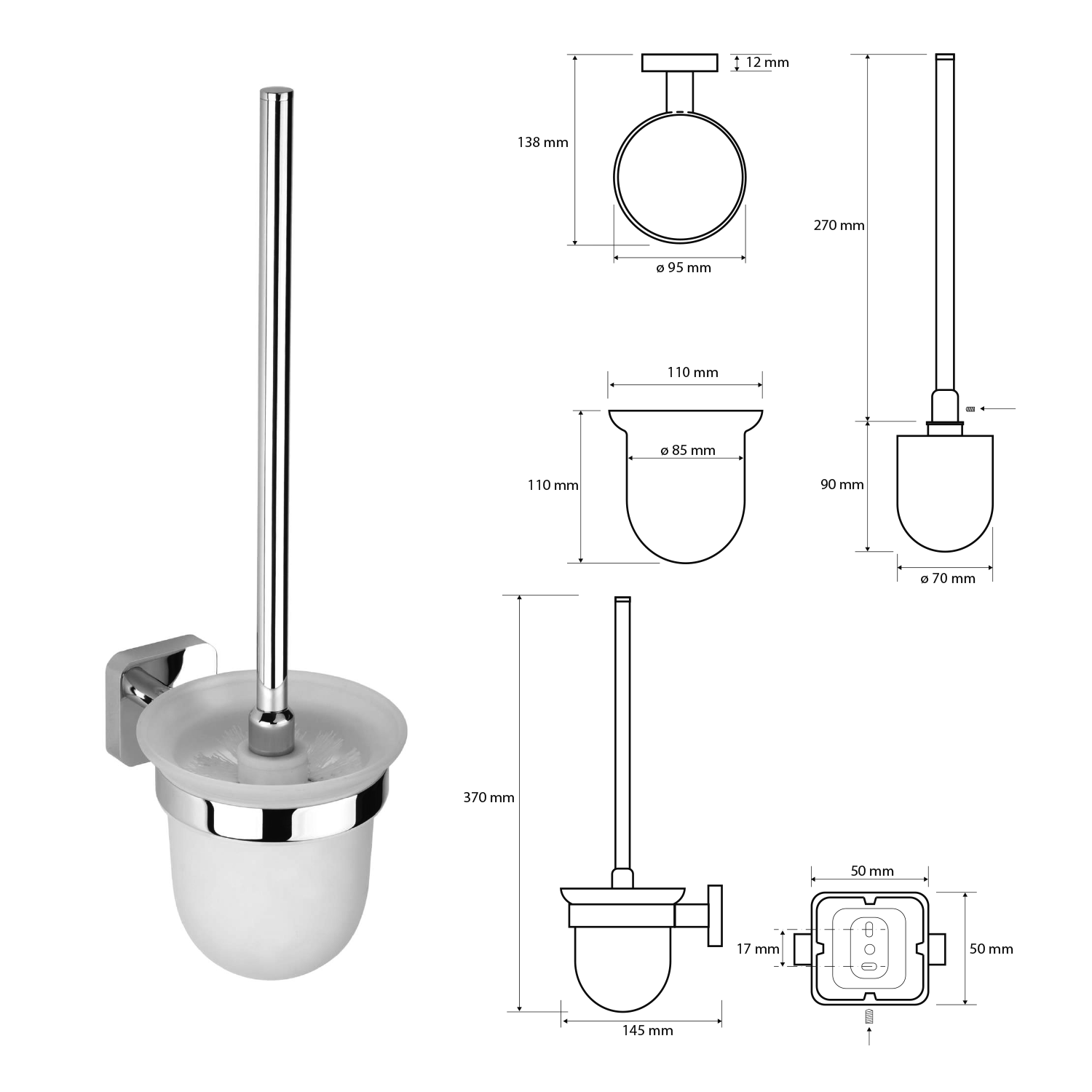 XQ301 BEMETA BETA Fali WC kefetartó, üveg, fehér kefe, 95x360x140mm, króm (132113012)