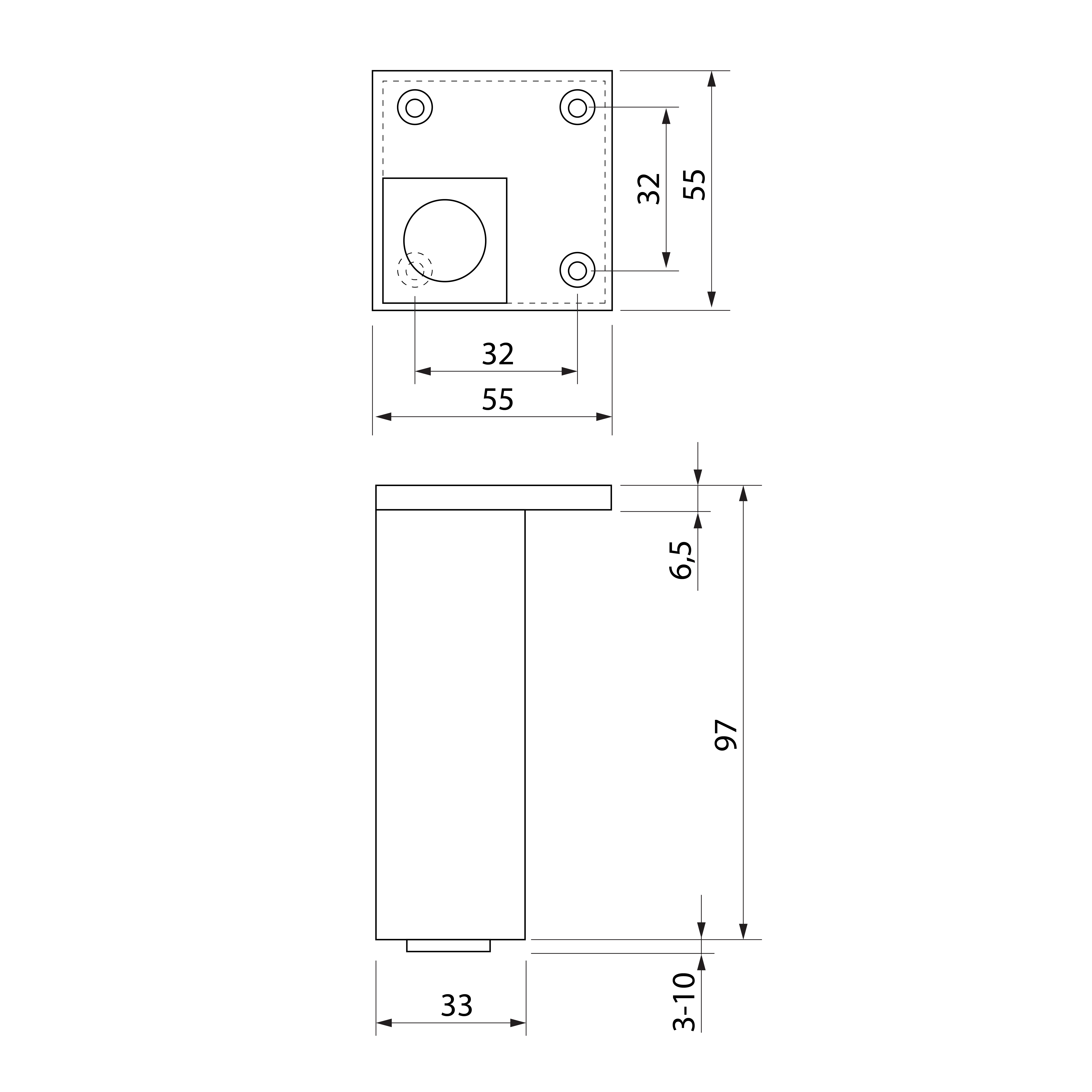 AQUALINE állítható bútorláb, fekete (0776R-B)