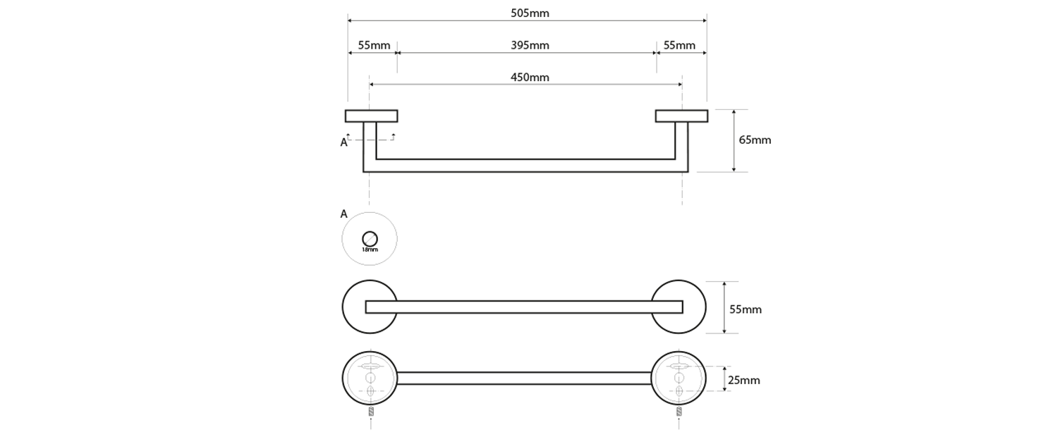 XS401 BEMETA NEO Törölközőtartó, 505x55x65mm, inox/matt (104204125)