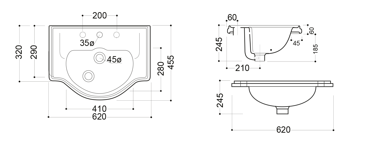 103001 KERASAN RETRO Beépíthető kerámiamosdó, 62x45,5cm