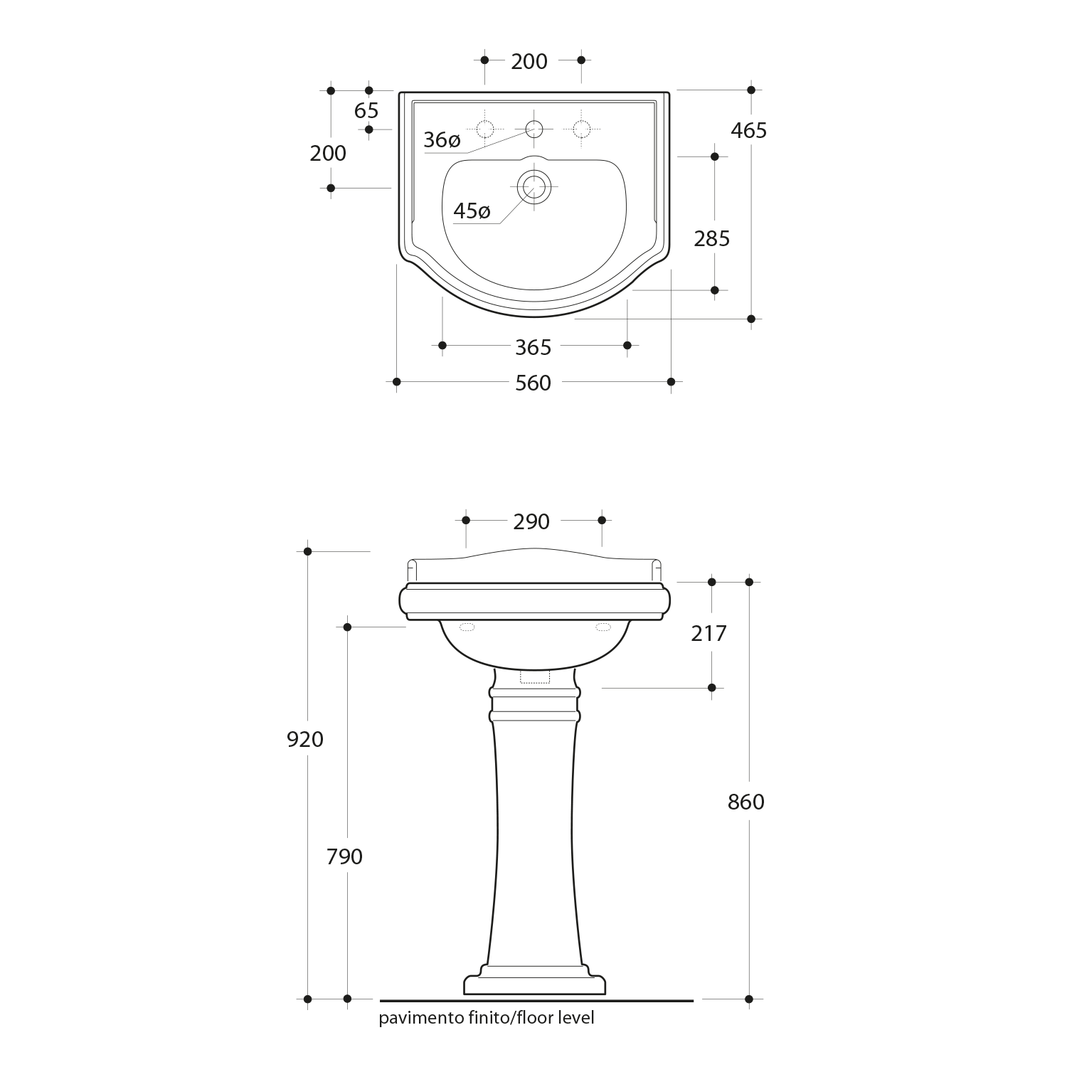 102001 KERASAN RETRO álló bidé, 1 furattal, 38,5x41x60cm