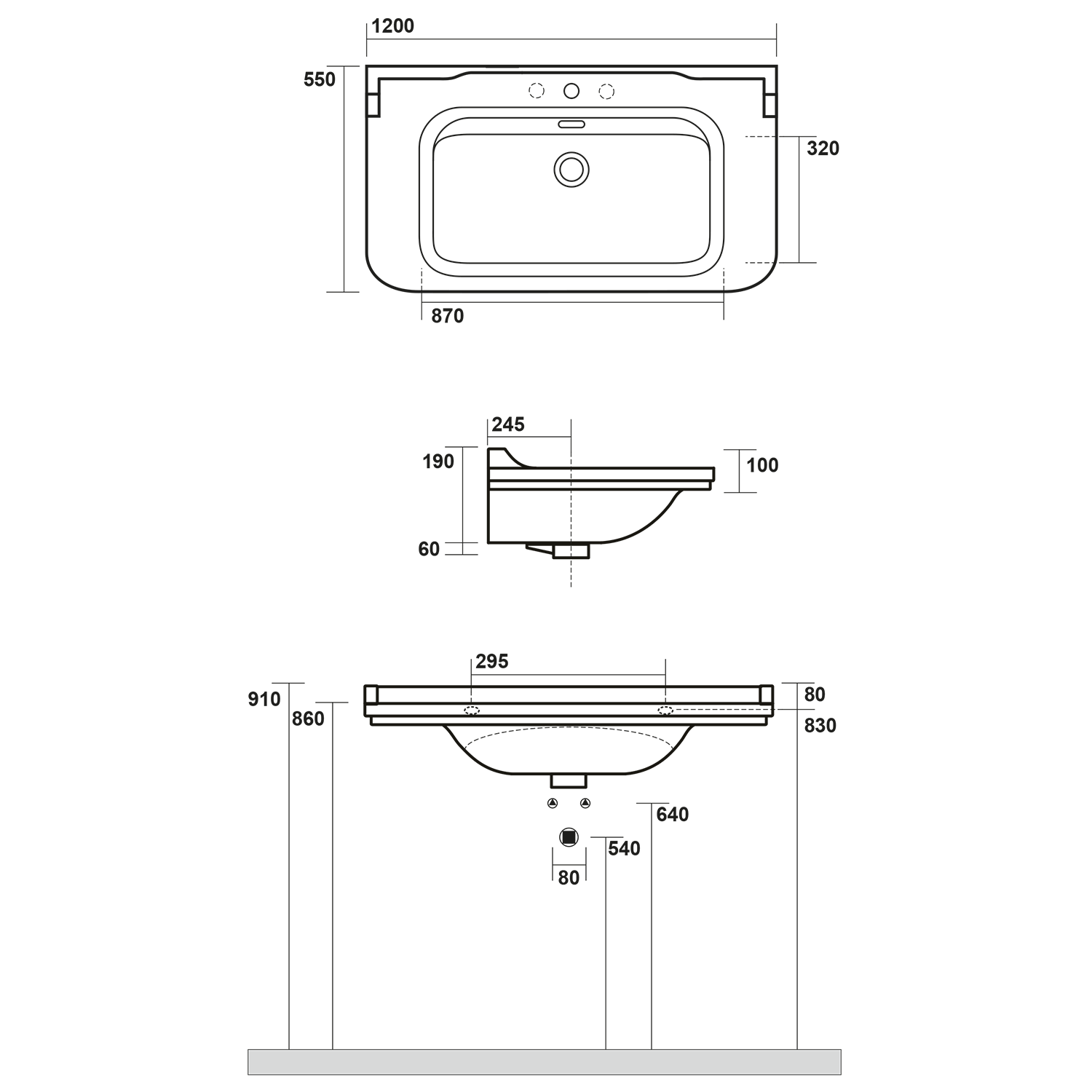 4141K1-3 KERASAN WALDORF kerámiamosdó, 3 furattal, 80x55cm