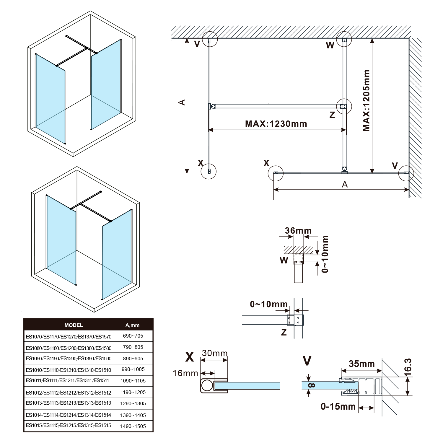 ES1012 POLYSAN ESCA Walk-in zuhanyfal, 1167x2100mm, transzparent üveg