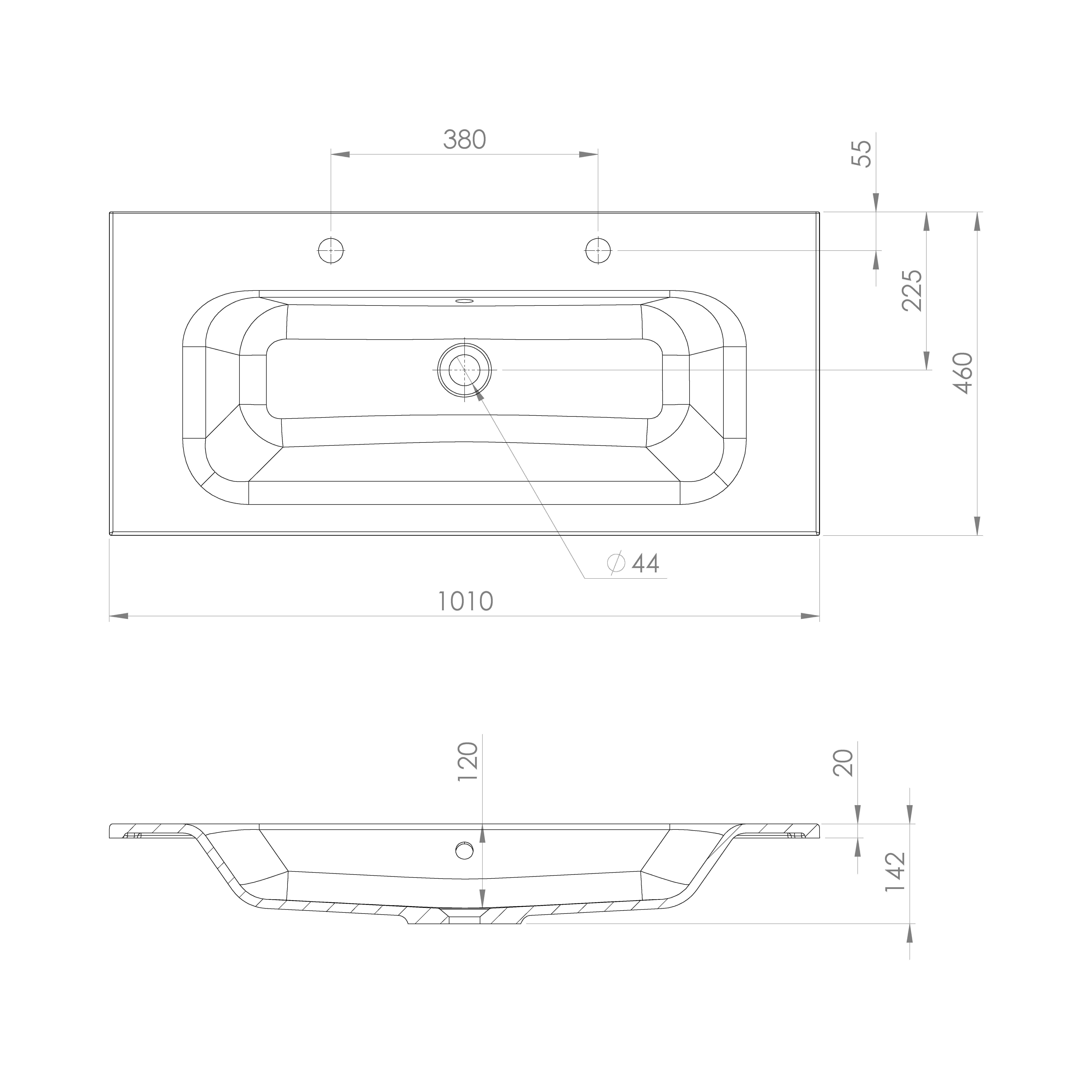 SD101-2 SIDRA öntöttmárvány mosdó, 2 csaplyukkal 101x46cm