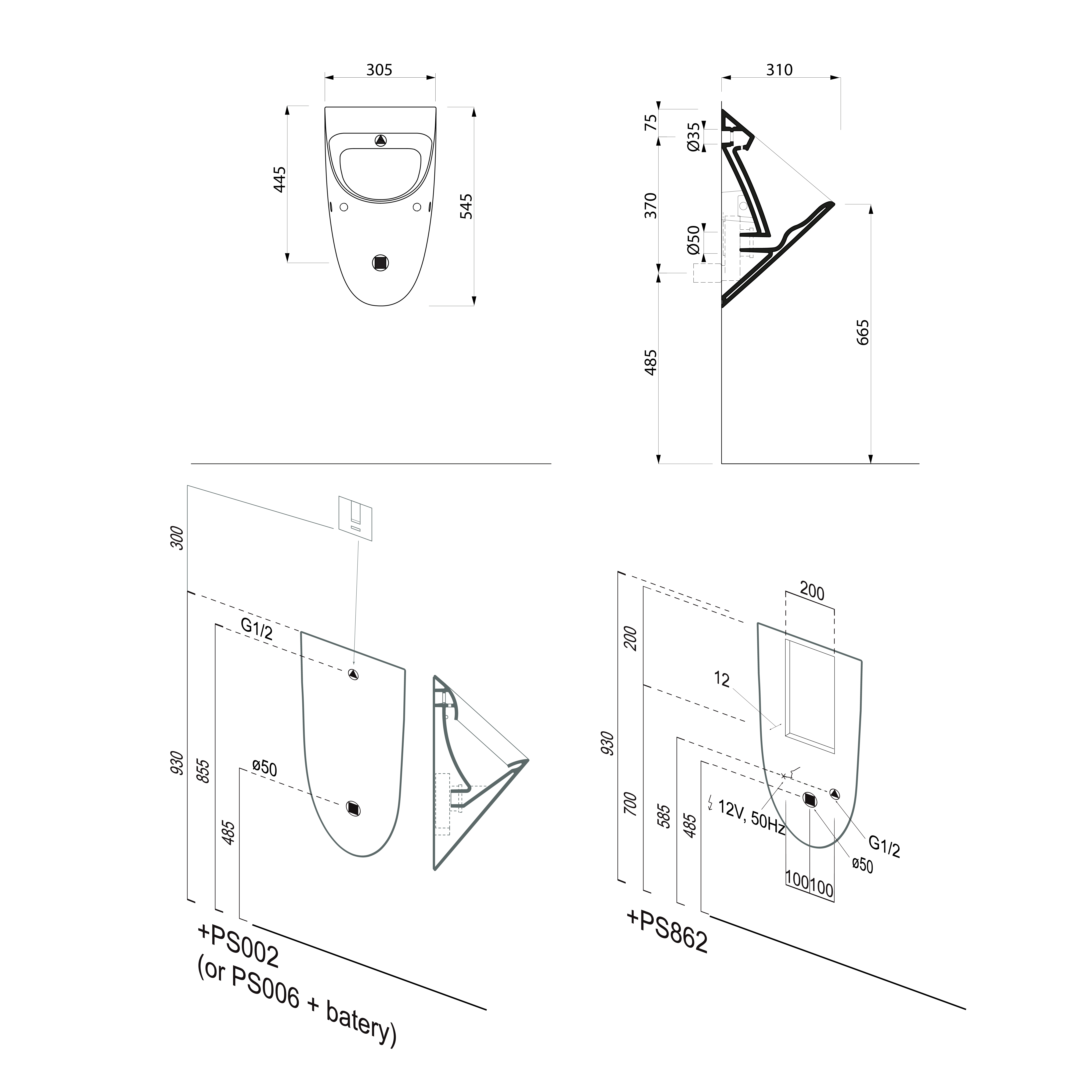 PS862 Szenzoros öblítőmechanika piszoárhoz, 6V DC