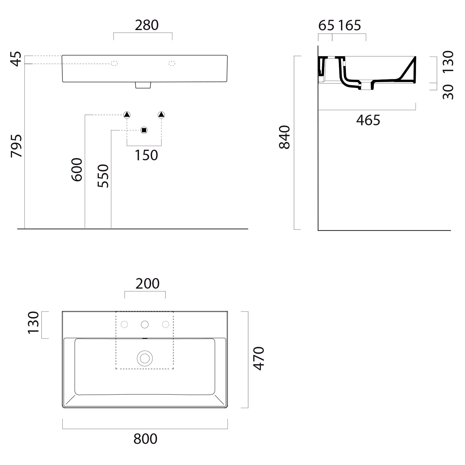 94579311 GSI KUBE X kerámiamosdó, 80x47cm, csiszolt alsó élekkel, 3 furattal, ExtraGlaze