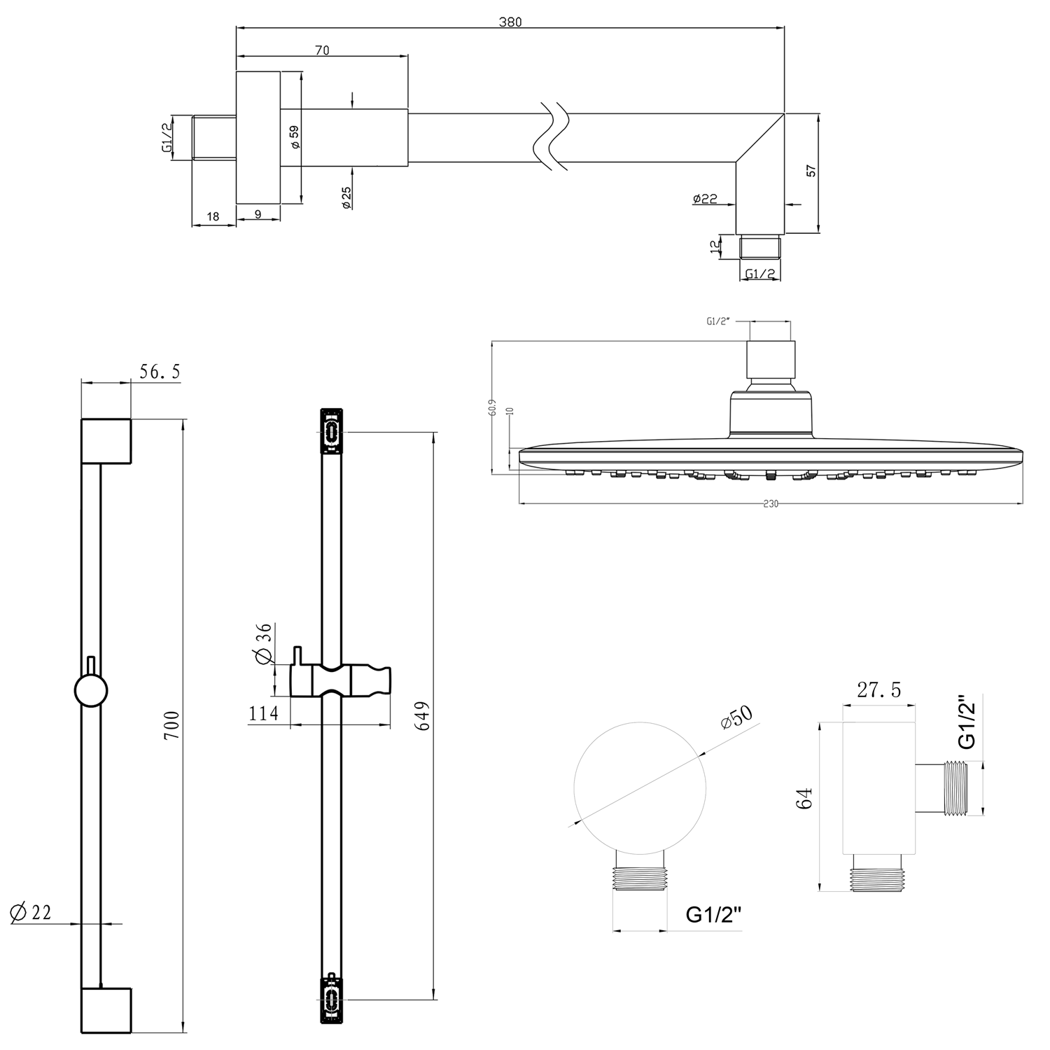 Zuhanyoszlop rúd átmérőjeÁtmérő 22 mm