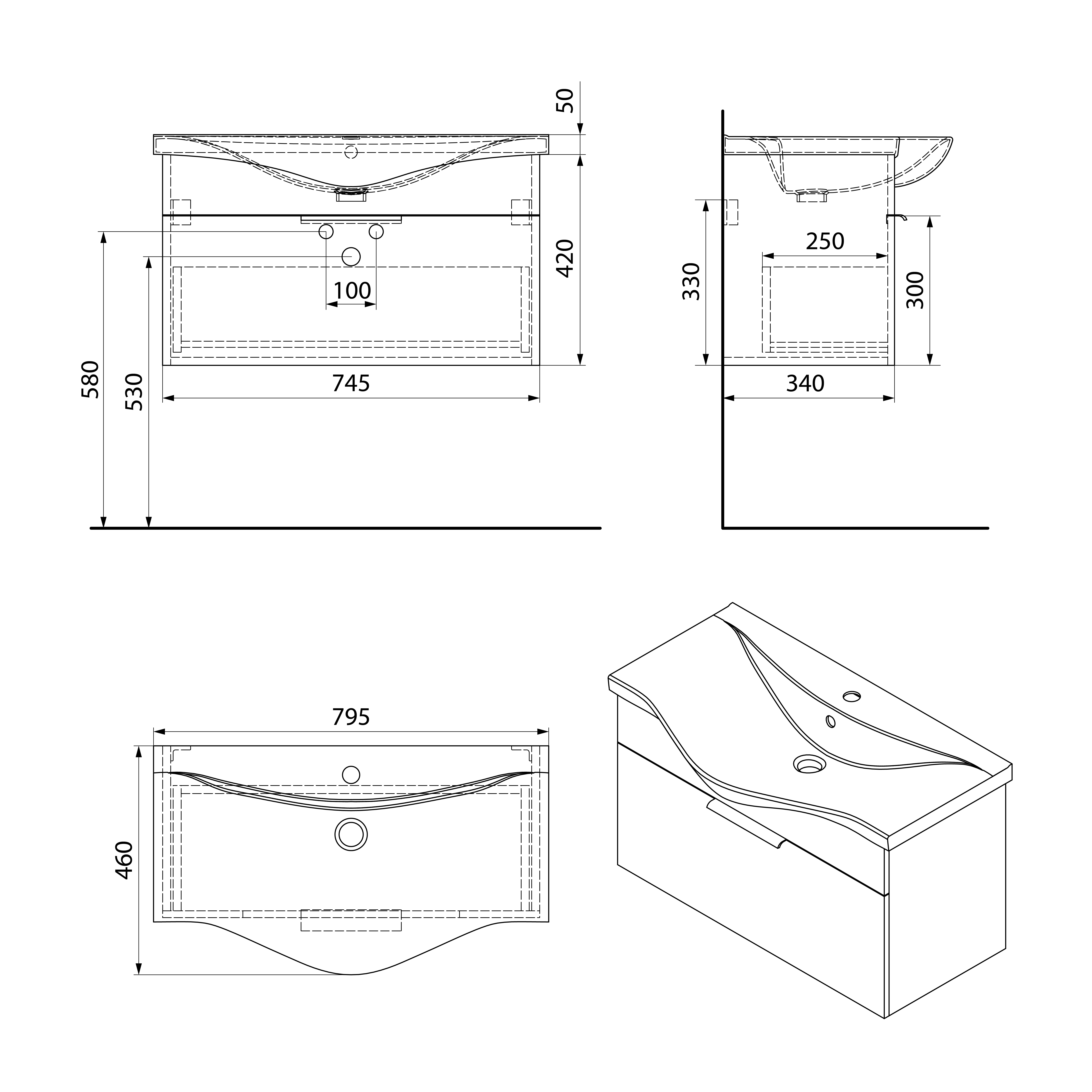 AK210 AQUALINE AKIRA mosdótartó szekrény fogantyú nélkül, 96x42x34,5cm
