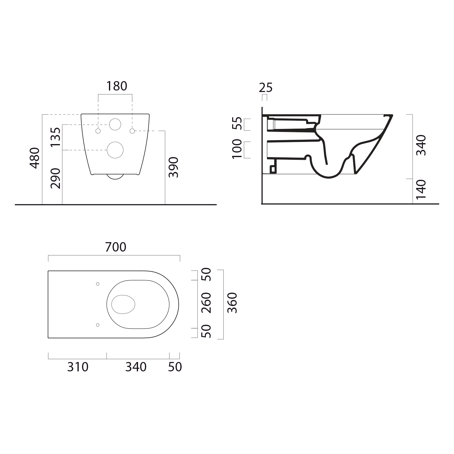 The shape of the bowl allows for efficient and effective flushing with less water, thus saving the environment and water costs.Economical flushing can be used with a dual flush cistern, whose drain valve allows the water volume to be set from 2 liters for a small flush and 4 liters for a large flush.