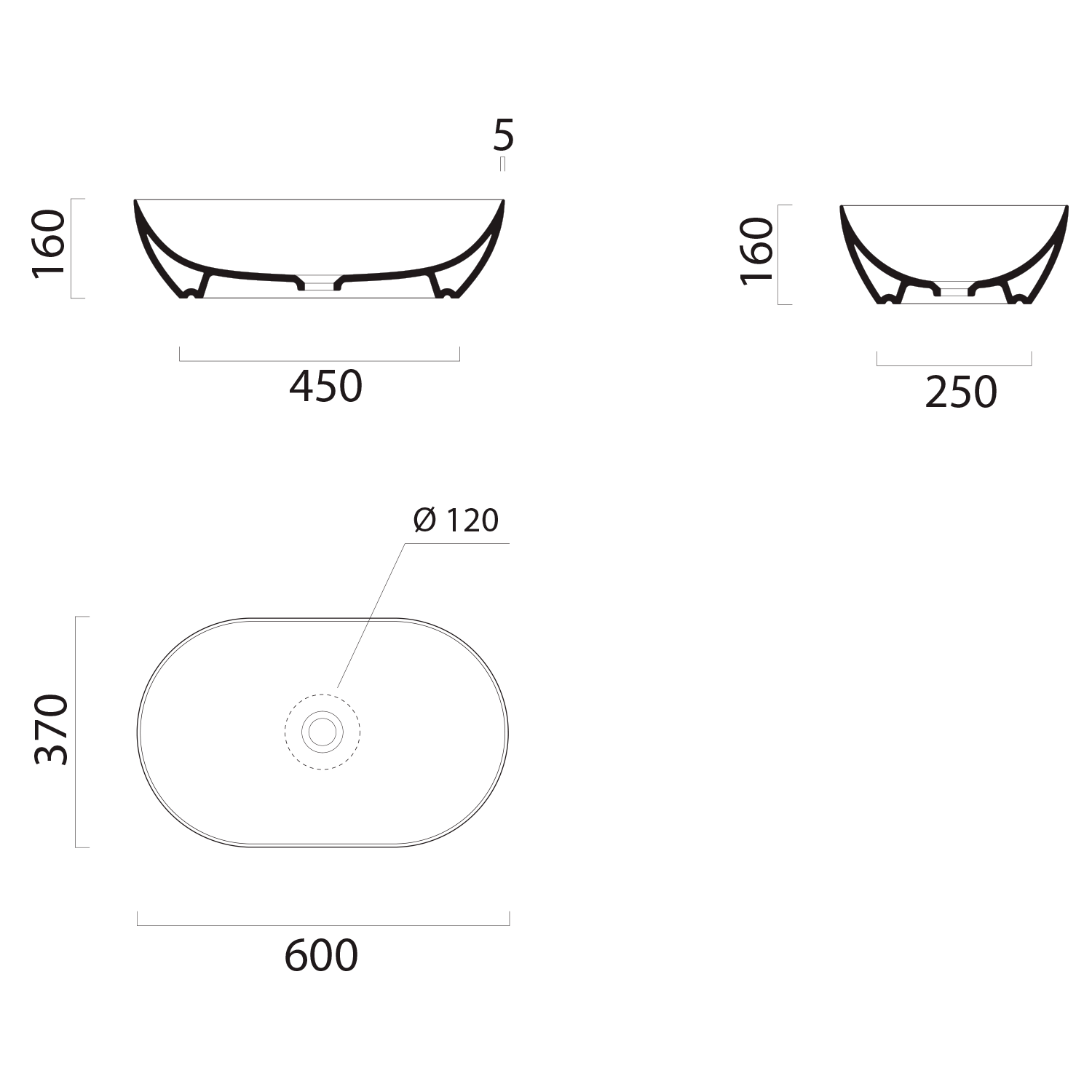 884217 GSI PURA pultra helyezhető kerámiamosdó, 60x16x42cm, matt hamuszürke