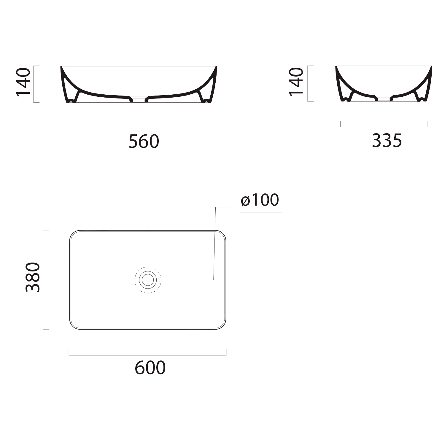 903609 GSI SAND kerámiamosdó, pultra helyezhető, 60x14x38cm, matt fehér