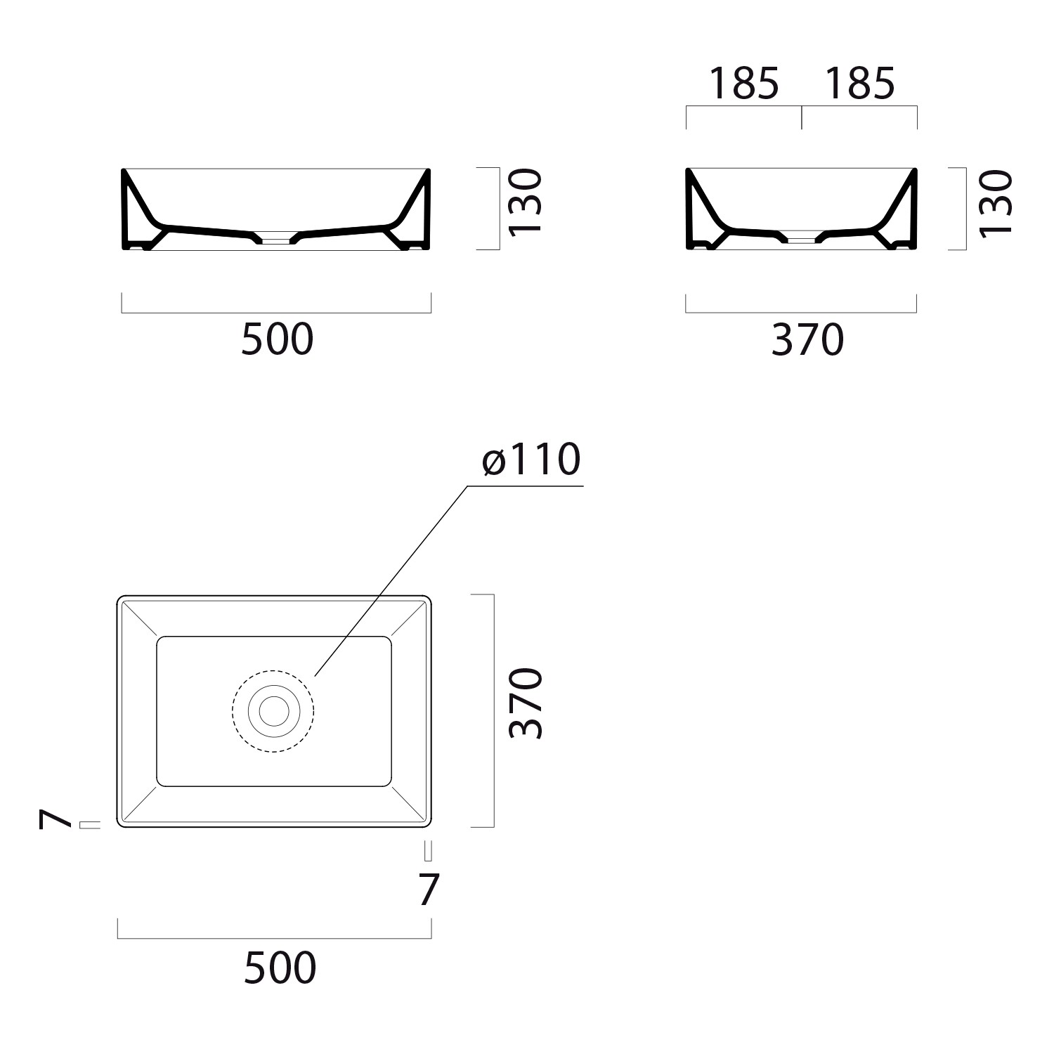 94229026 GSI KUBE X kerámiamosdó, csiszolt alsó szélekkel, 80x47cm, furat nélkül, matt fekete