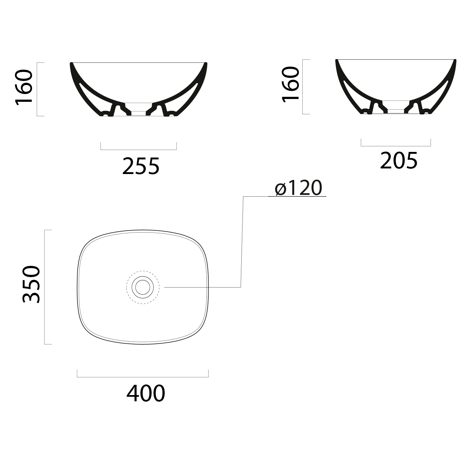 9684026 GSI NUBES kerámiamosdó, 40x32cm, furat nélkül, matt fekete