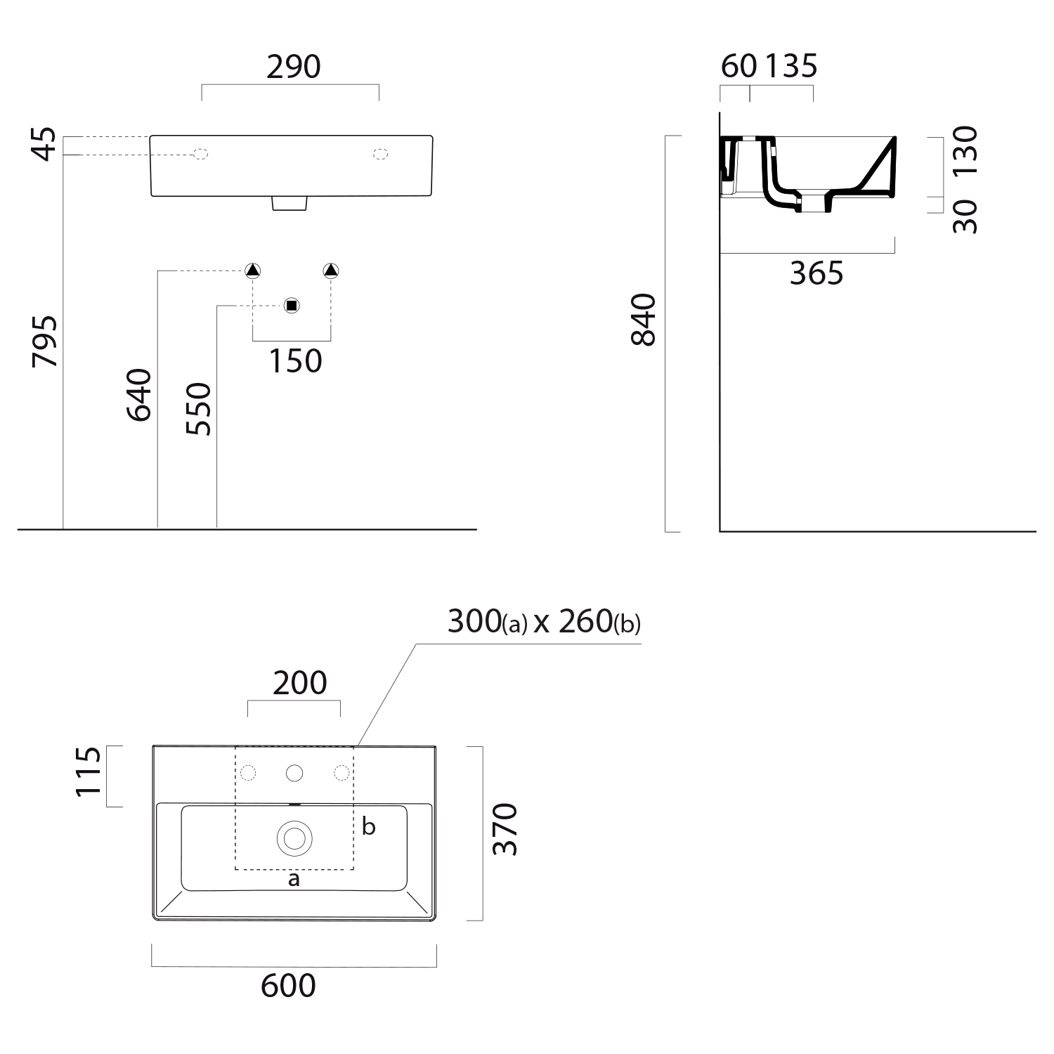 94319311 GSI KUBE X kerámiamosdó, 60x47cm, csiszolt alsó élekkel, 3 furattal, ExtraGlaze