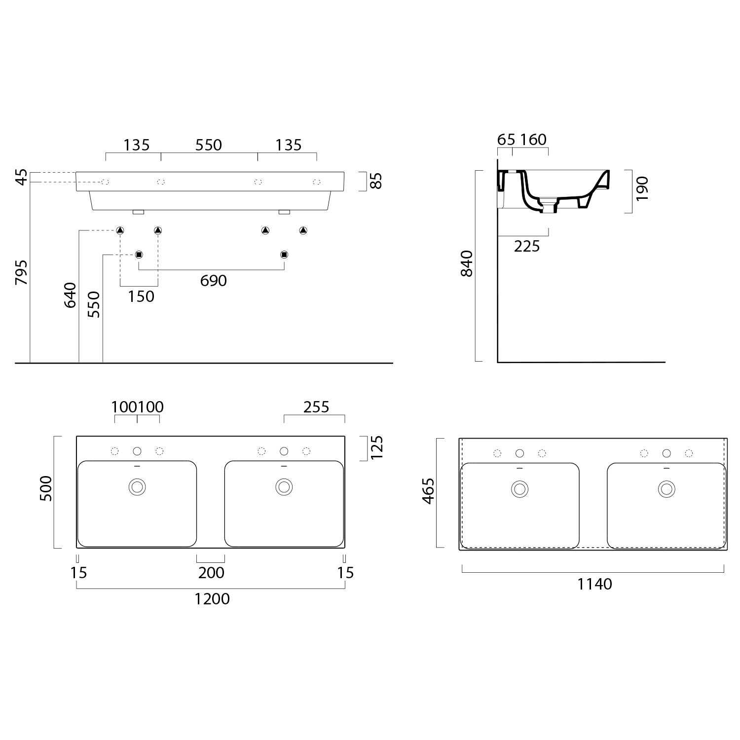 9625011 GSI NUBES dupla kerámiamosdó, 120x50cm, furat nélkül, ExtraGlaze