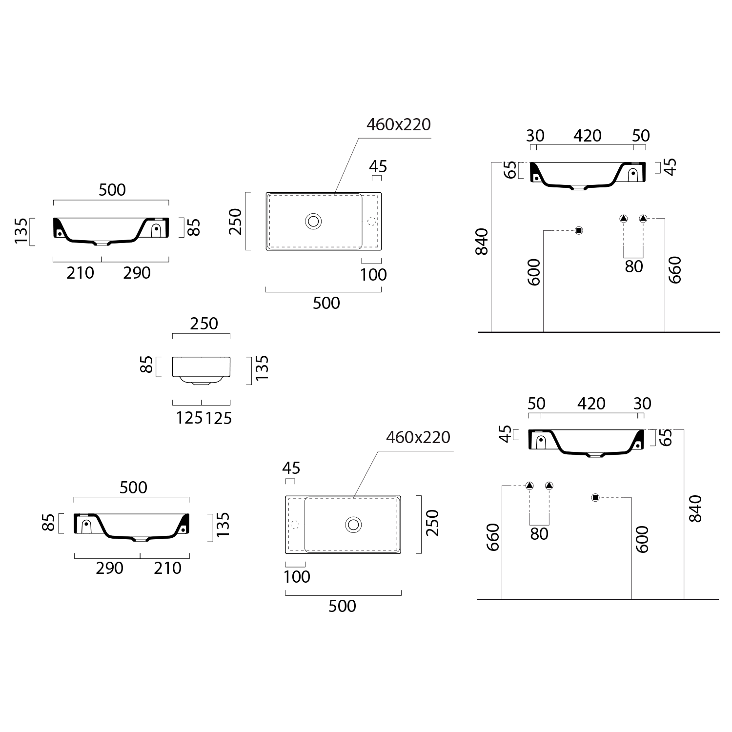 96229311 GSI NUBES kerámiamosdó, 80x50cm, retifikált, 3 furattal, ExtraGlaze
