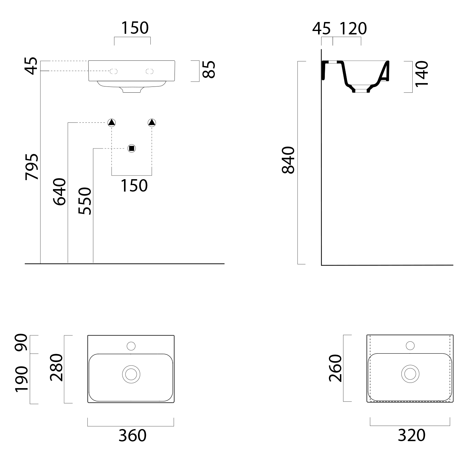 96839311 GSI NUBES kerámiamosdó, 60x40cm, retifikált, 3 furattal, ExtraGlaze