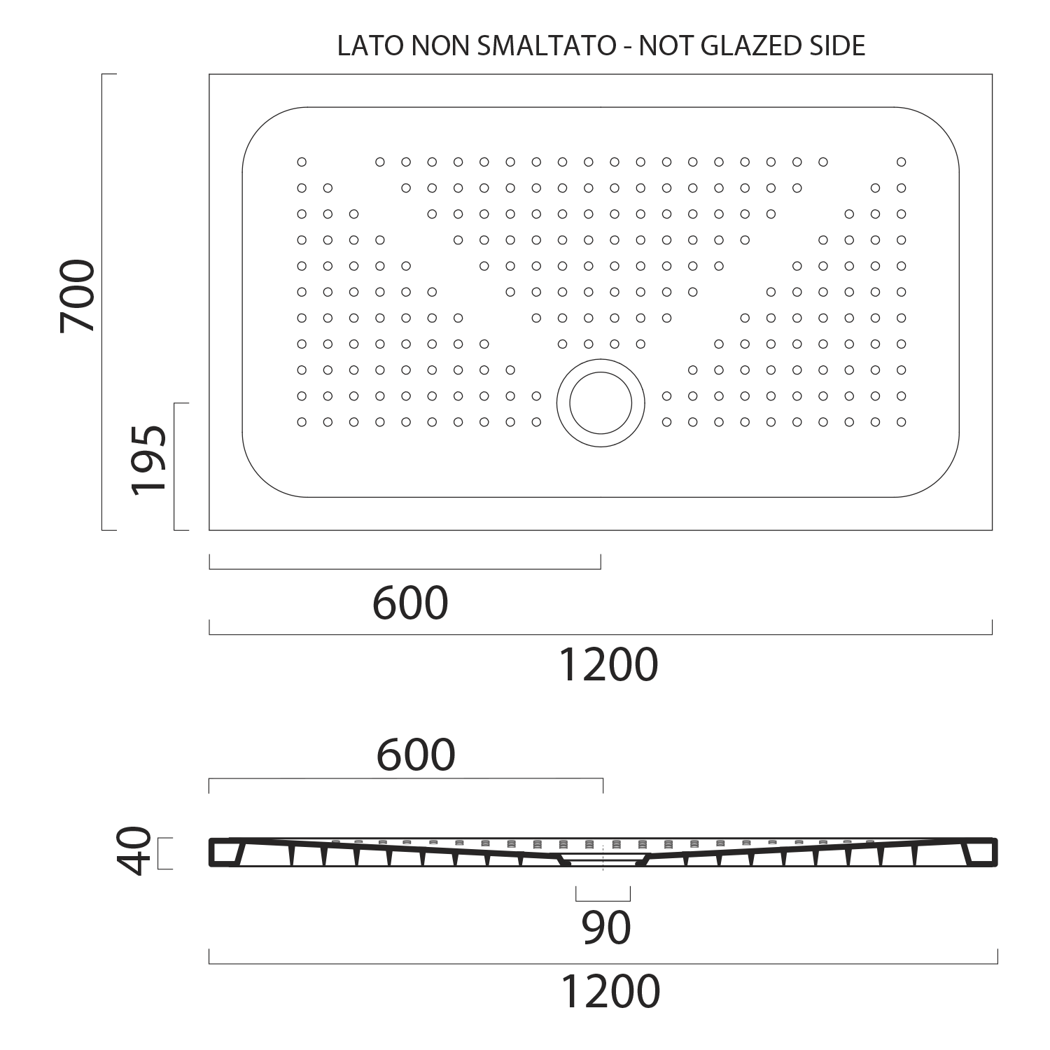 The ceramic shower tray is installed on the floor or flush with the floor.