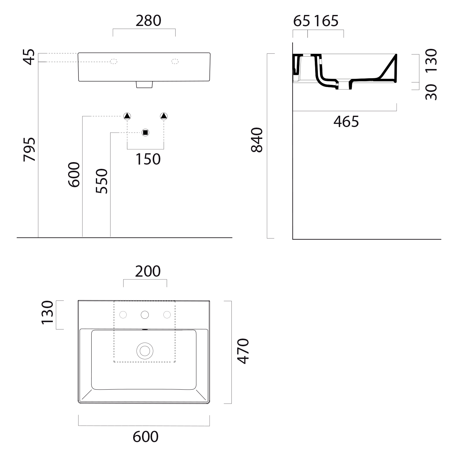 GSI KUBE X kerámiamosdó, csiszolt alsó szélekkel, 60x47cm, 3 furattal, matt fehér (94319309)