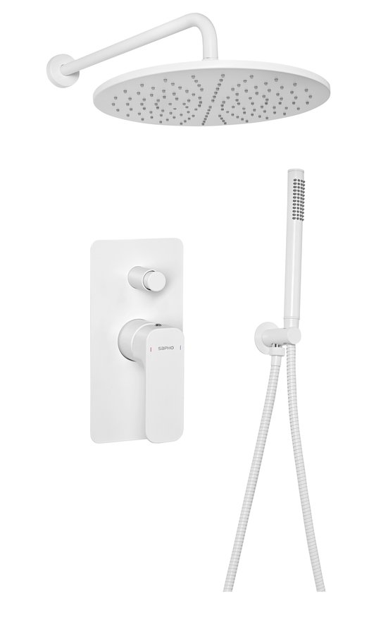 PY42/14-01 SPY falba süllyesztett zuhanycsaptelep, 2-irányú váltóval, zuhanyszettel és fejzuhannyal, matt fehér