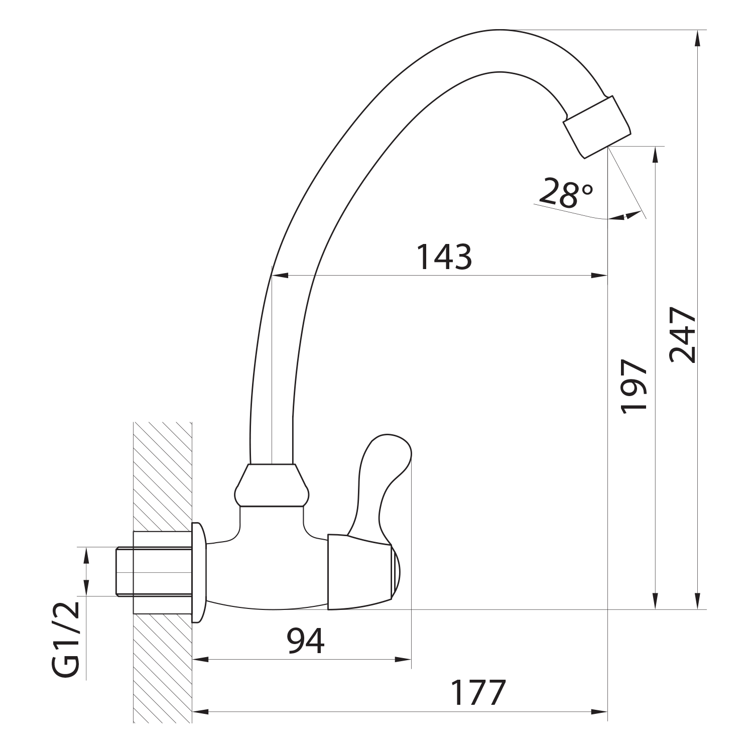 ZY1812 AQUALINE Faliszelep kifolyóval, 1/2", króm