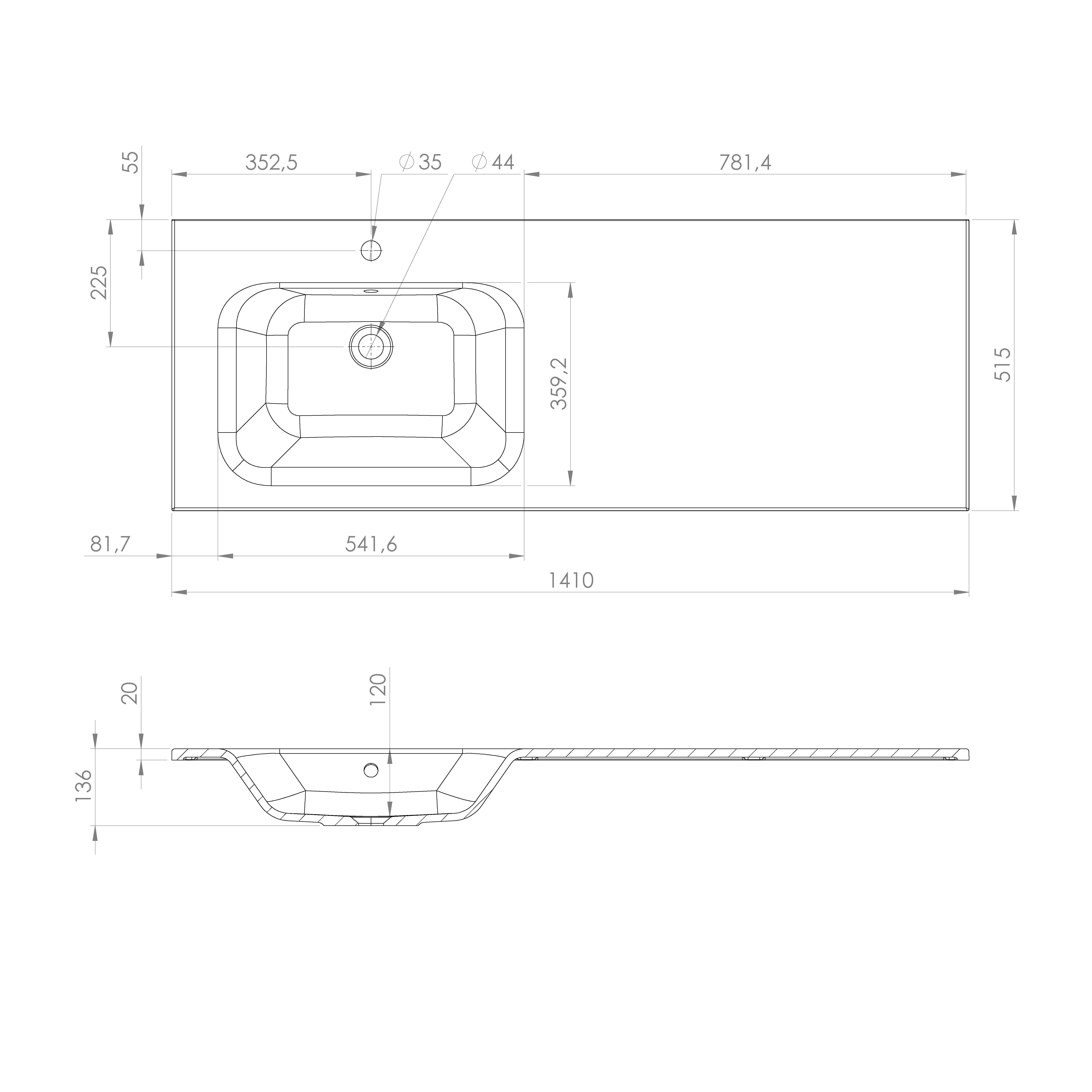 AC141L ARECA öntöttmárvány mosdó, 141x51,5cm