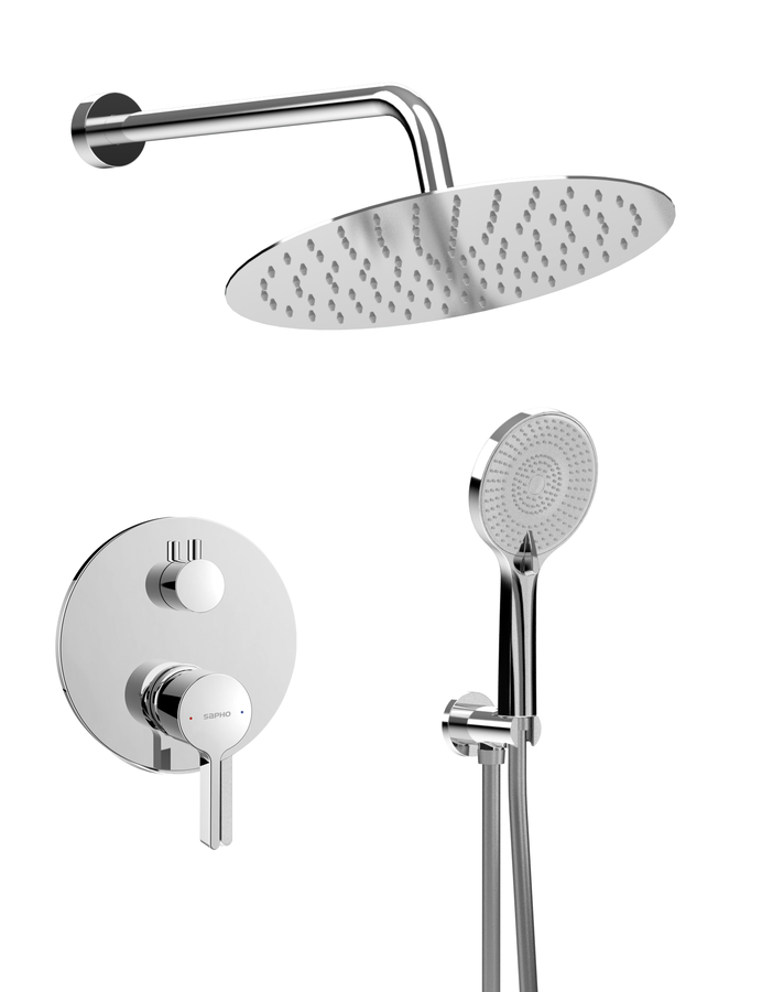 ICONIC falbasüllyesztett csaptelep, zuhanyszettel, fejzuhannyal, 2-irányú, króm (AF042-01)