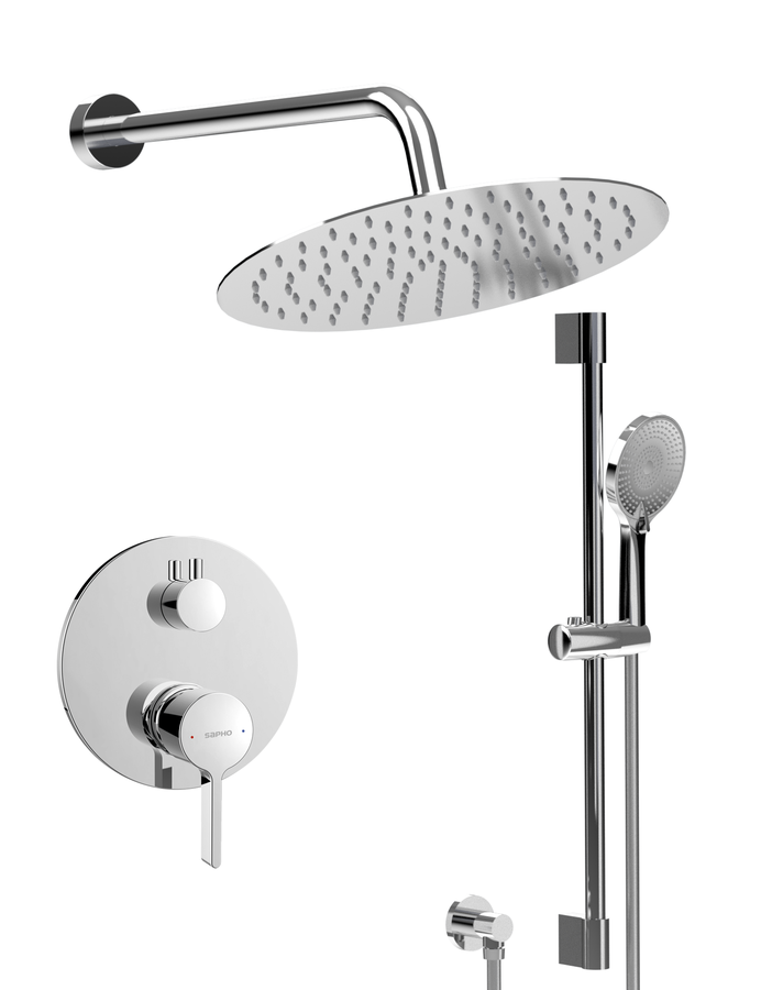 ICONIC falbasüllyesztett csaptelep, zuhanyszettel, zuhanyrúddal, fejzuhannyal, 2-irányú, króm (AF042-02)