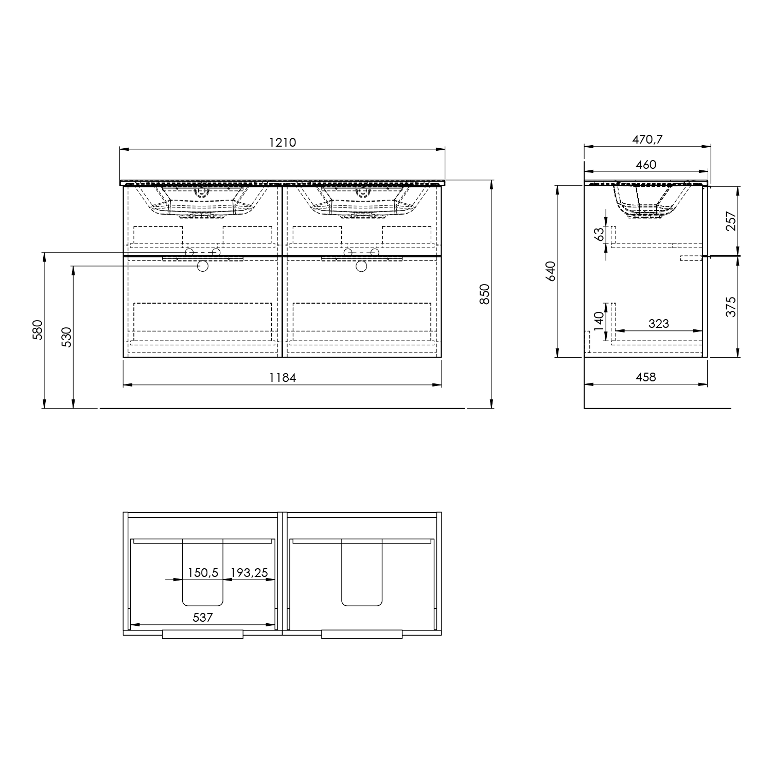 1601-120 SLIM kerámia duplamosdó, 121,5x46cm