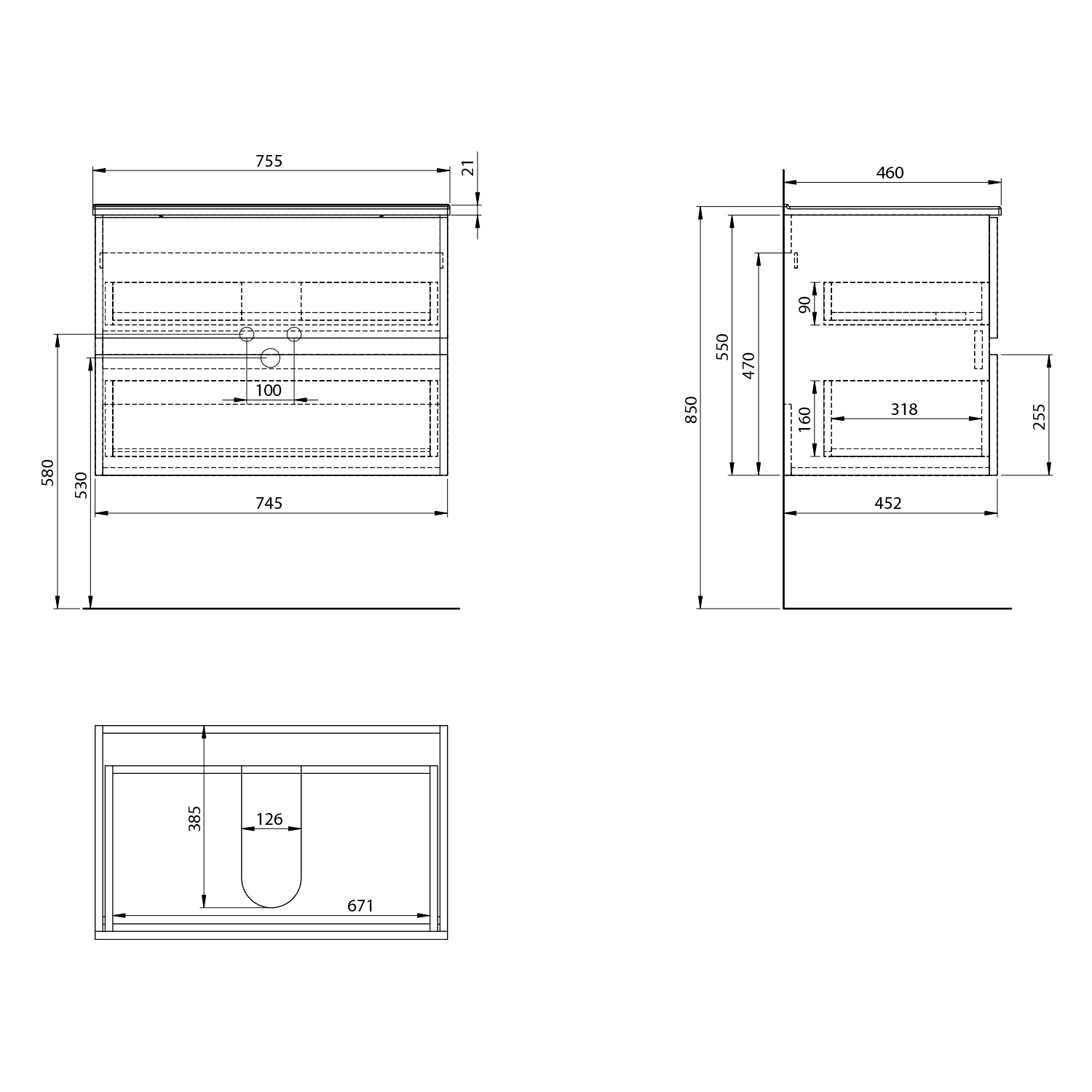 1601-75 SLIM kerámiamosdó, 76,5x47cm