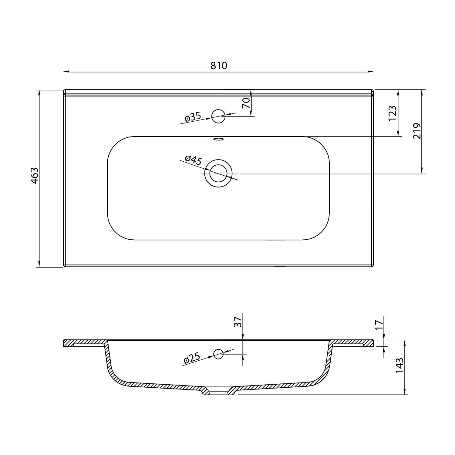 SD081 SIDRA öntöttmárvány mosdó, 81x46,3cm
