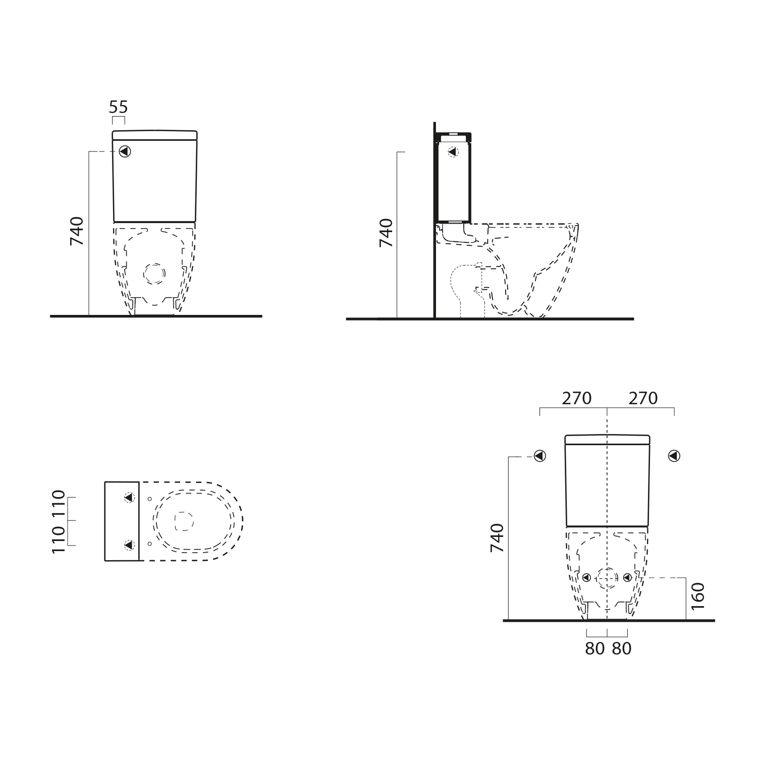 880609P GSI PURA monoblokkos WC, Swirlflush, alsó/hátsó kifolyású, 36x63cm, dual matt fehér