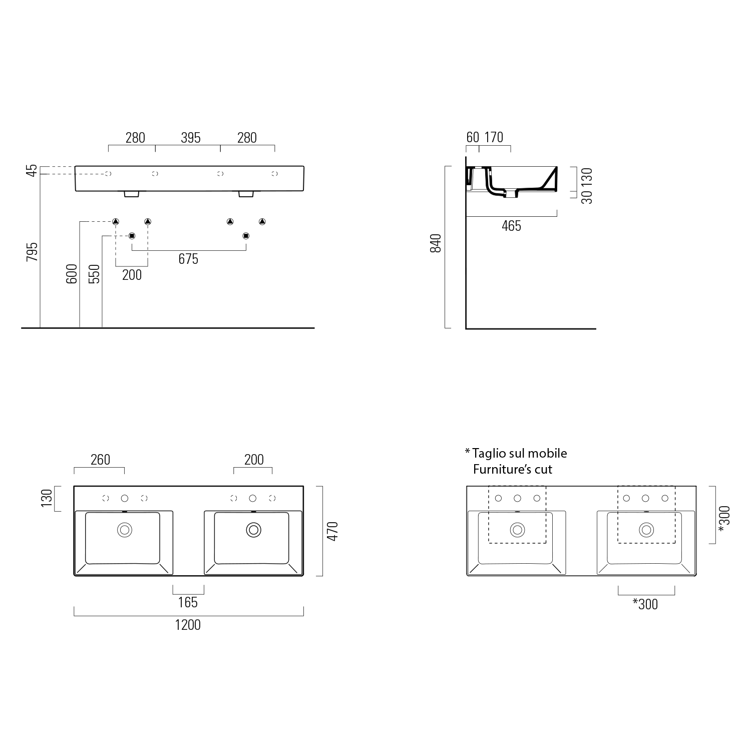 GSI KUBE X dupla kerámiamosdó, 120x47cm, furat nélkül, 120x47cm, matt fekete (9425026)