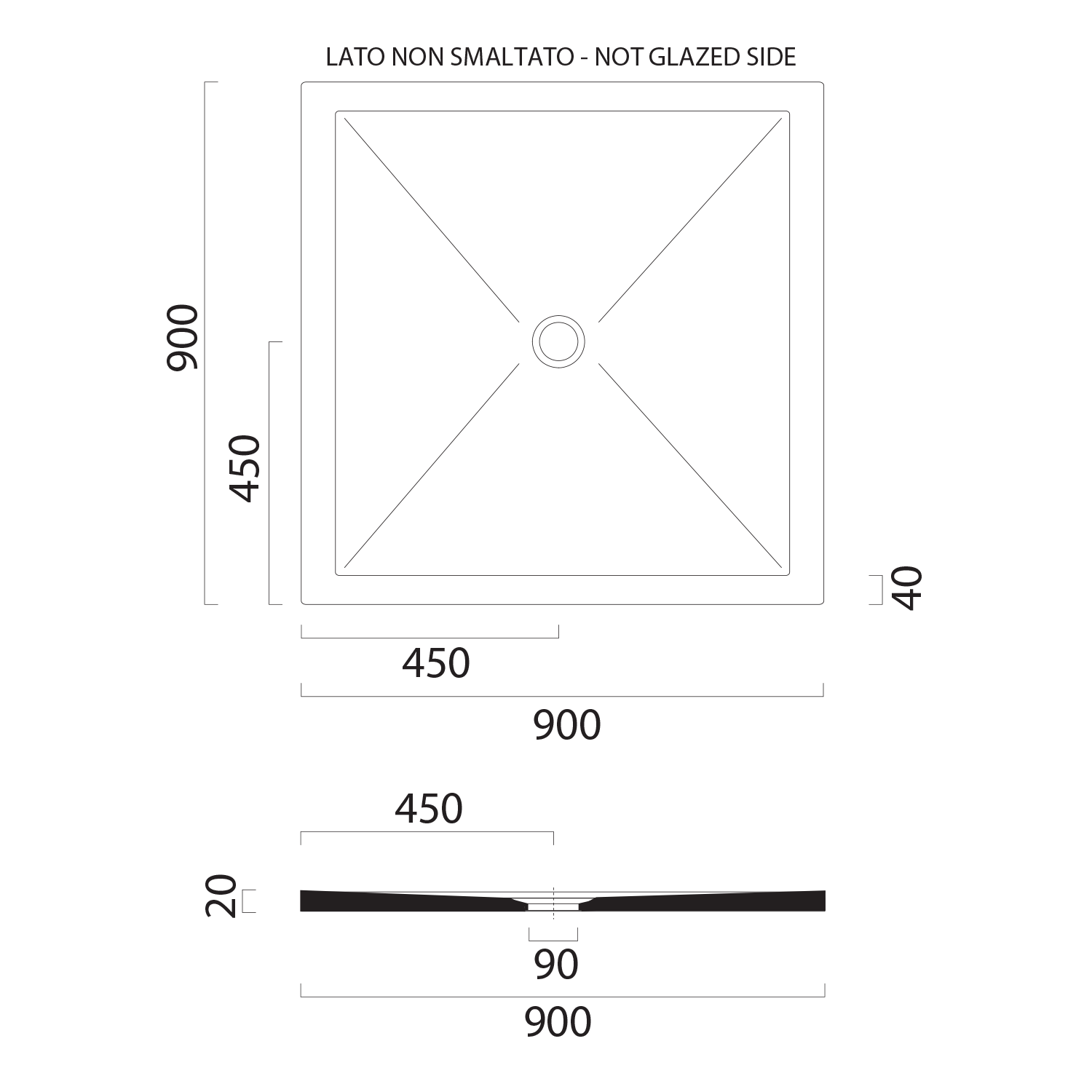 47090911 GSI EXTRA FLAT zuhanytálca, 90x90x4cm, ExtraGlaze