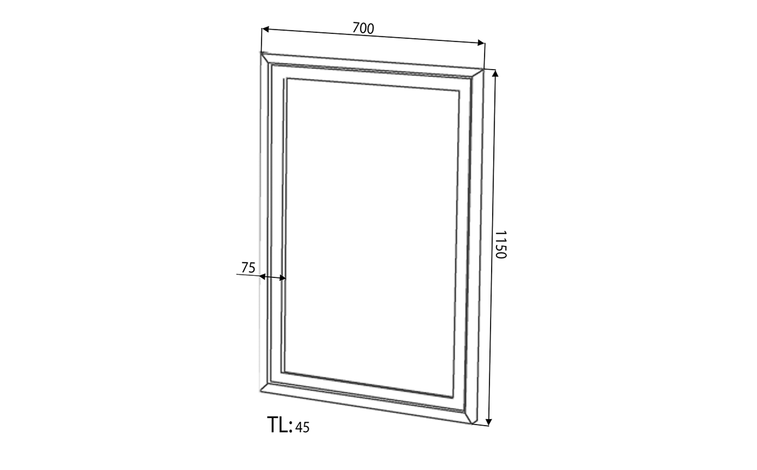 1686 RETRO keretes tükör, világítás nélkül, 70x115cm, antik fehér