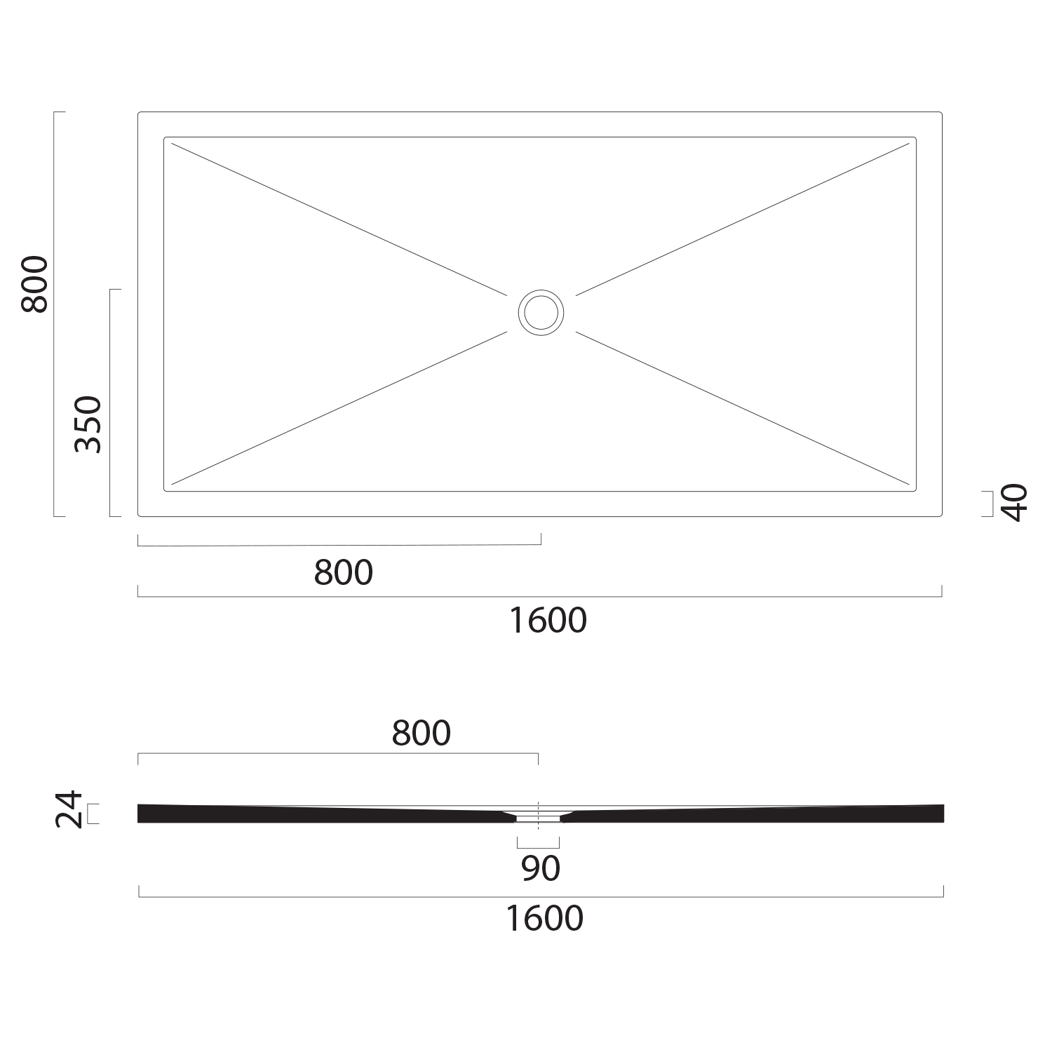 46160817 GSI EXTRA FLAT zuhanytálca, 160x80x2cm, matt cement