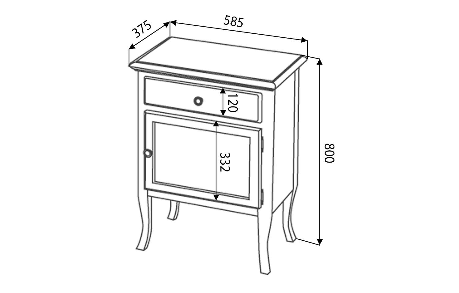 1693 RETRO alsószekrény, 1 fiókkal, 1 ajtóval, jobbos, 60x80x38 cm, antik fehér