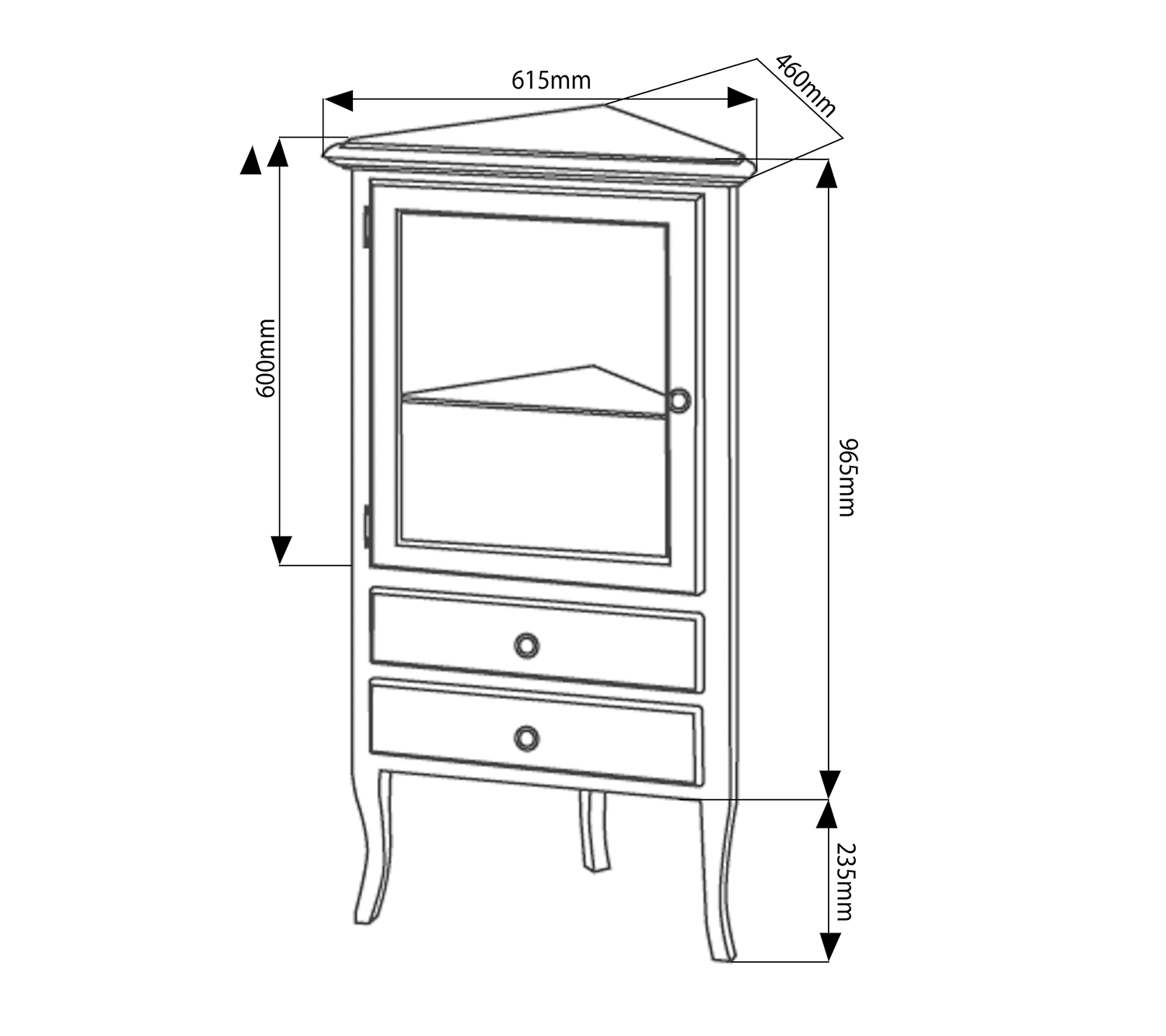 1715 RETRO állószekrény, 1 üvegajtóval, 2 fiókkal, jobbos, 60x120x47 cm, bükk
