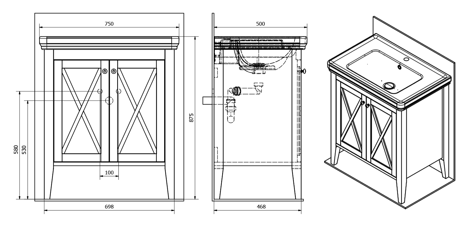 CR291 CROSS Mosdótartó szekrény, 2 fiókkal, 85x81x47cm, antik fehér
