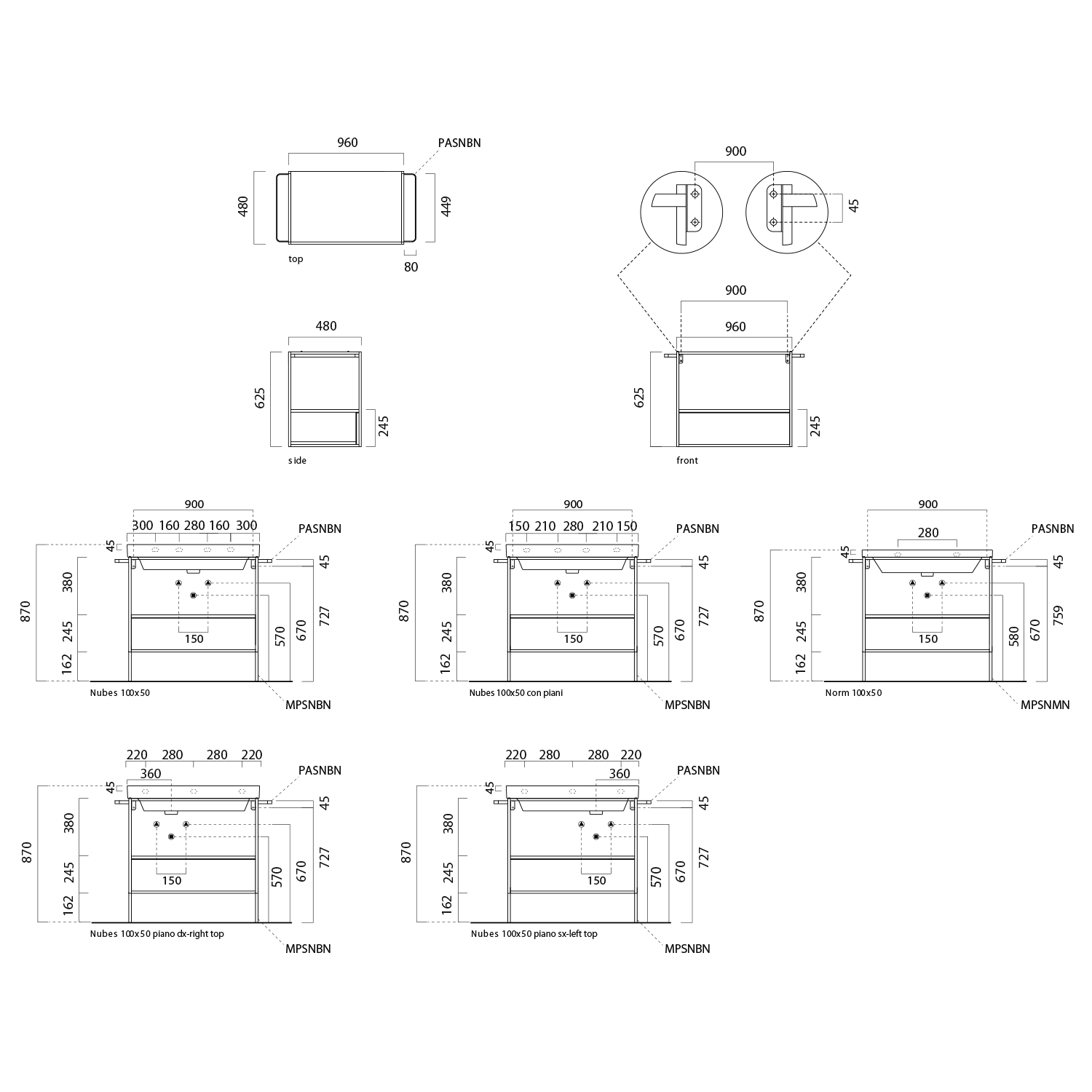 9627109 NUBES keramické umyvadlo 100x50cm, s odkládací plochou vpravo, bílá mat