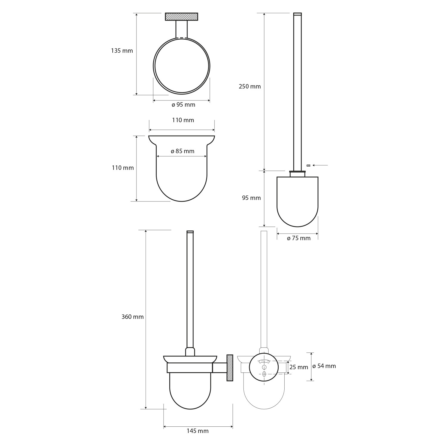 WS004BC BEMETA LARISSA fali fogkefetartó, 80x140x140mm, fekete/matt réz