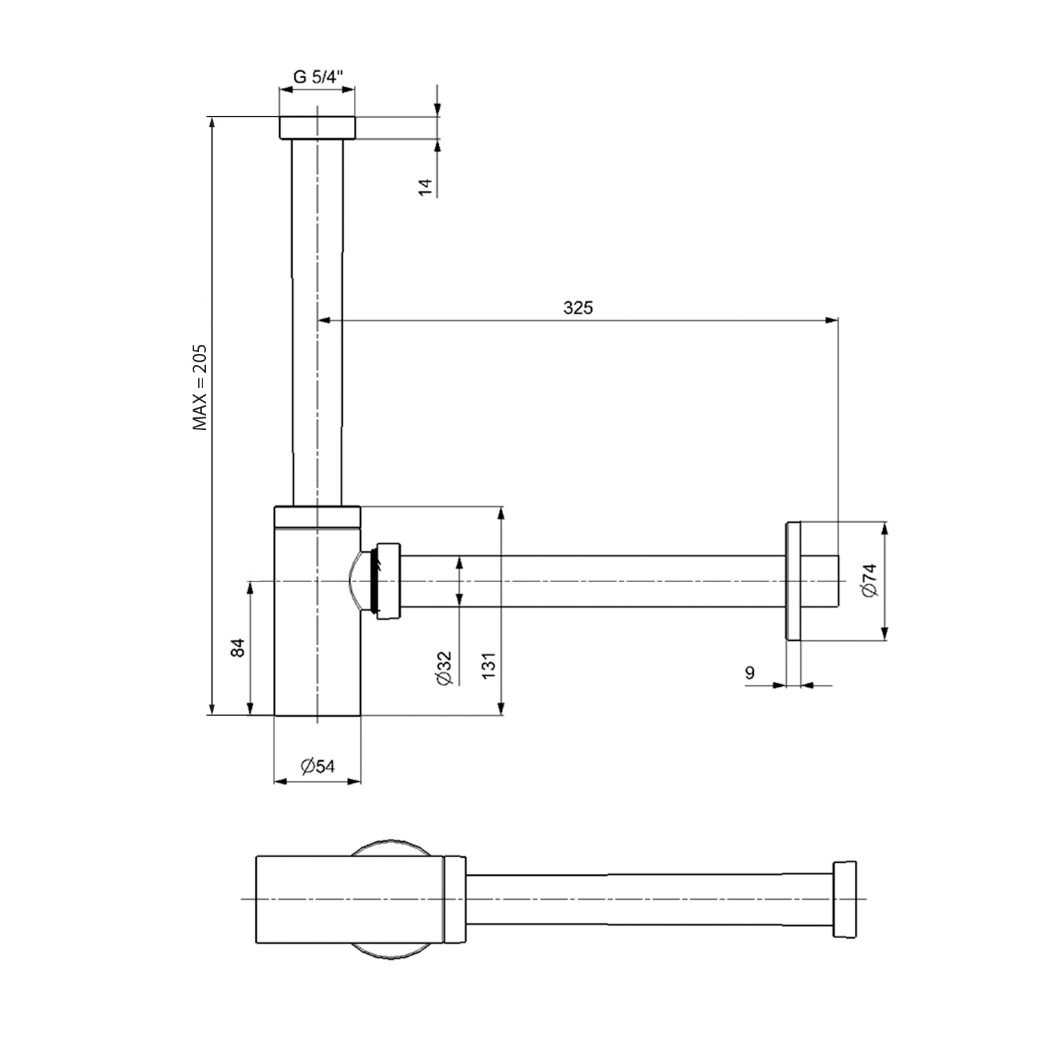 KING mosdószifon, 5/4", 32mm, ABS/matt fekete (9595PR25K9)