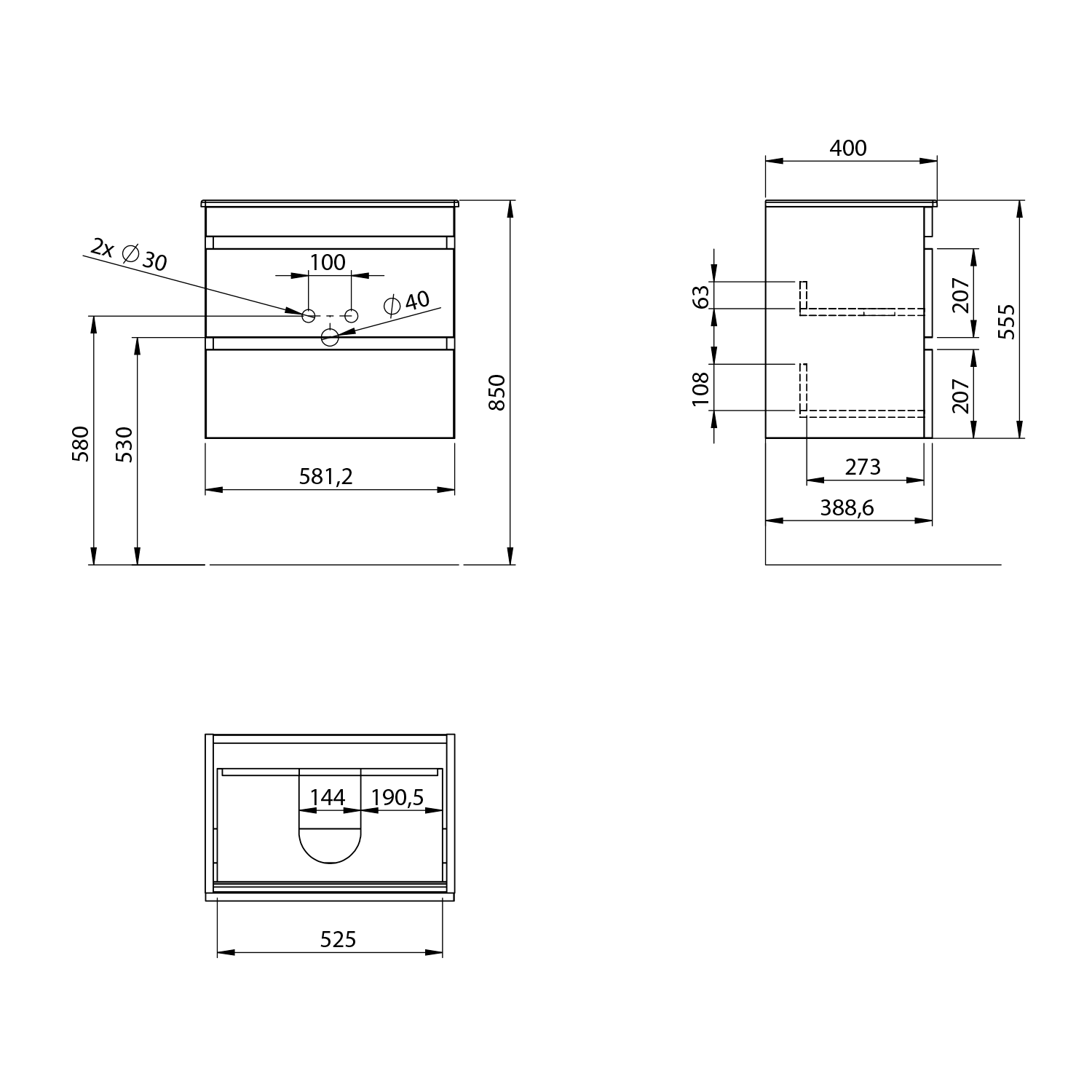 EZARA mosdótartó szekrény, 58x54x39cm, fényes fehér (EZ592-3030)