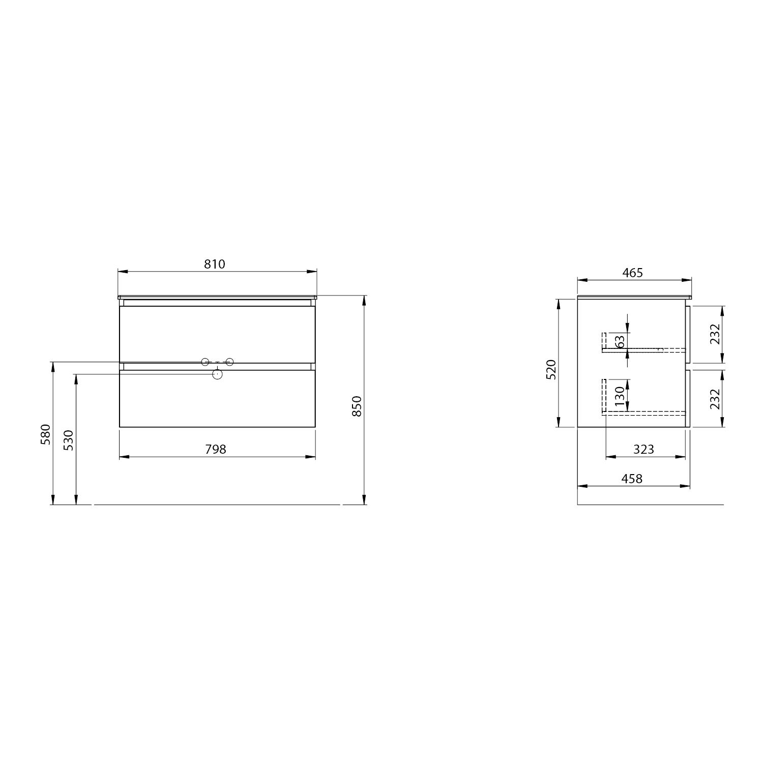 Furniture is equipped travels drawers with slow release and an automatic closing movement drawers. No more noisy closing.
