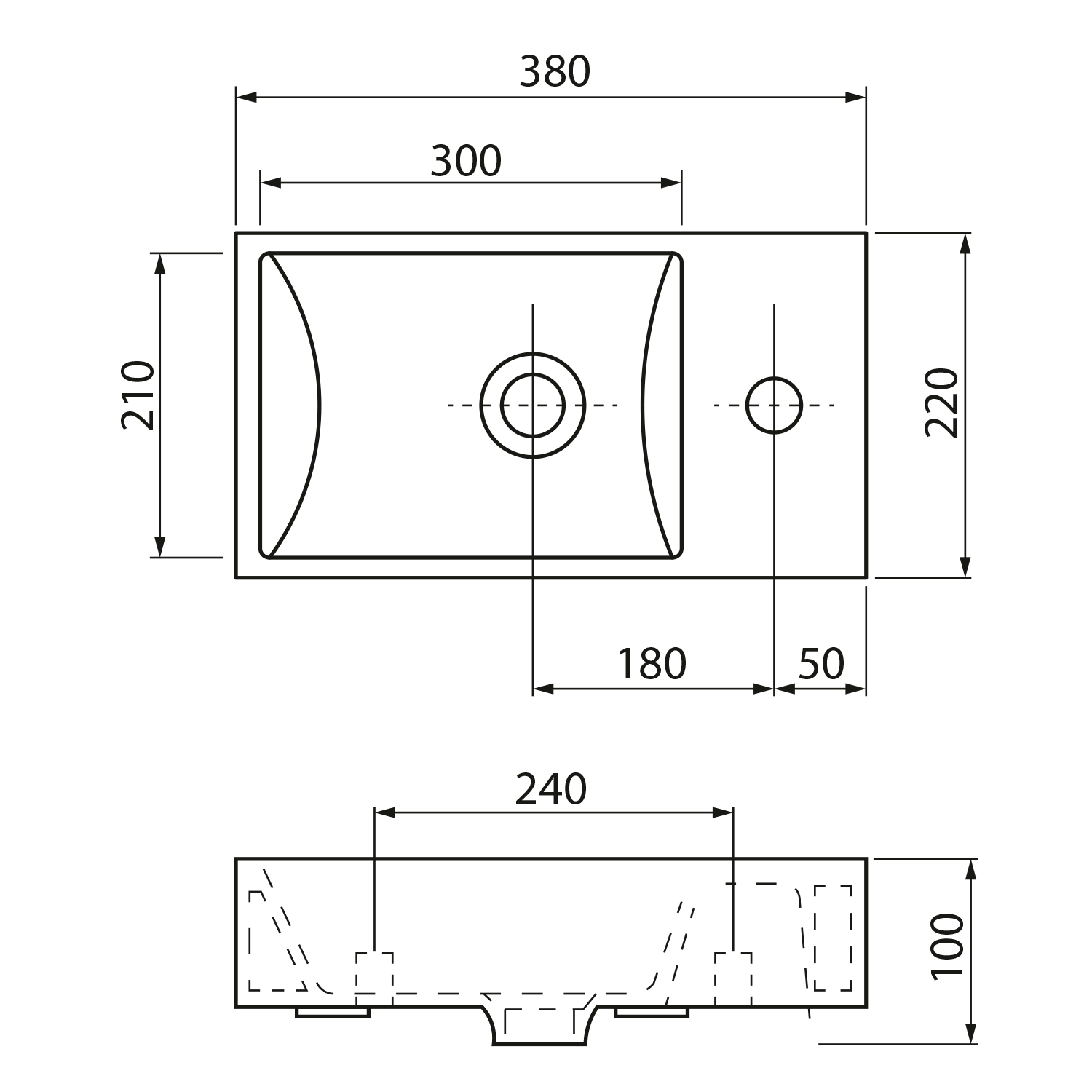AR495 ZOE kerámiamosdó, jobbos, 37x9x18cm