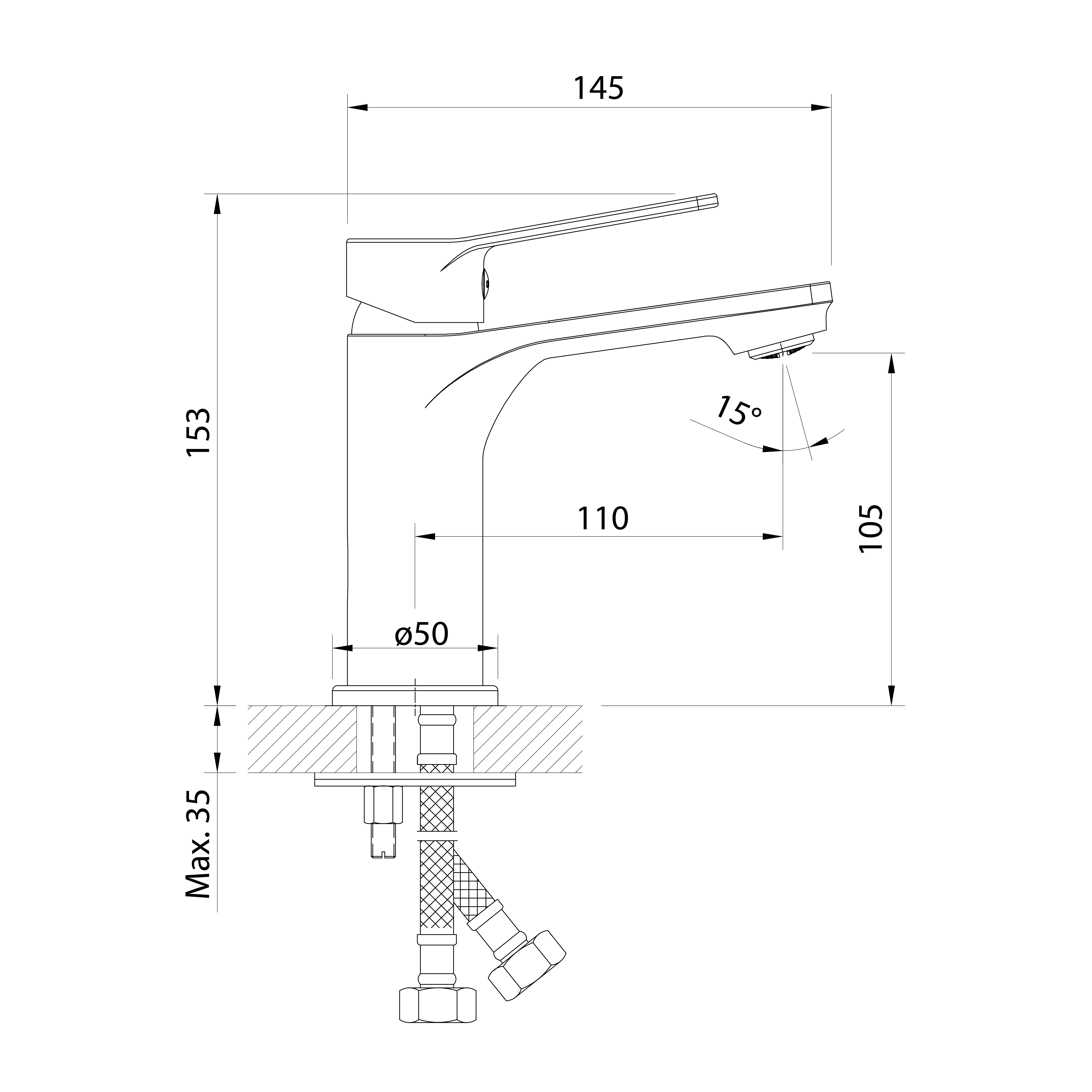 SX013-70 AQUALINE SINTRA fali csaptelep, flexibilis kifolyóval, matt fekete/króm