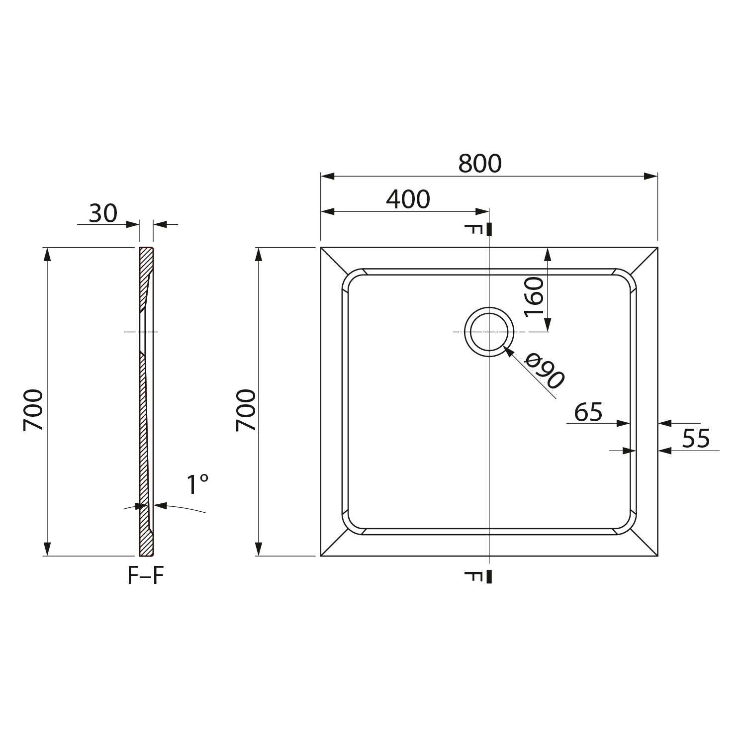 PQ8070 AQUALINE TECMI öntöttmárvány zuhanytálca, 80x70x3cm