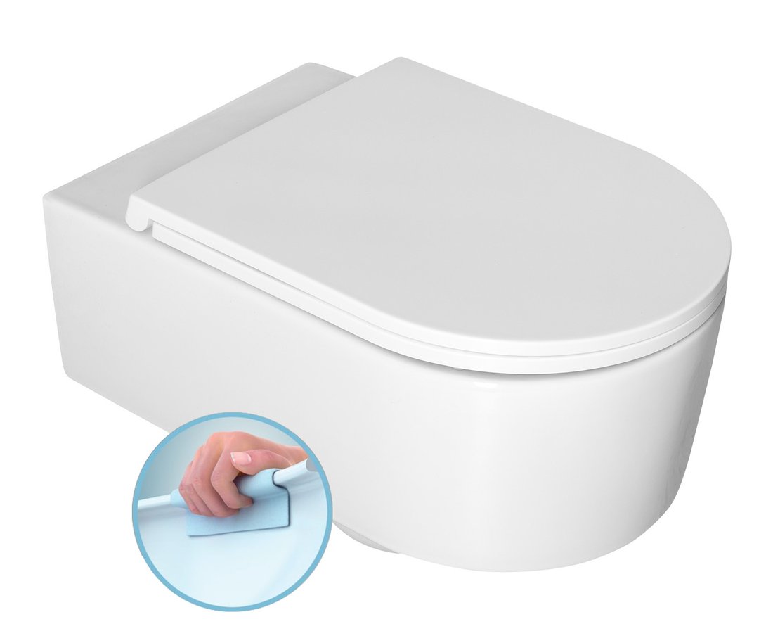 Rimless (NoRim) - toilets without a traditional flush rim. Smooth surface without cavities or creases. The flush water flows out through the water distributor only from the rear of the toilet bowl and, thanks to the special shape of the ceramic, perfectly flushes the interior. The advantage is easy maintenance and cleaning of the toilet bowl.